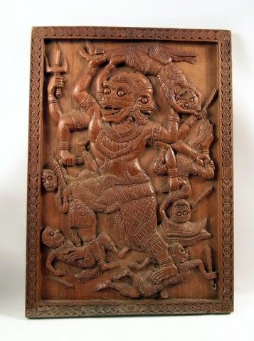 Indiana Jones Temple Of Doom Hand Carved Mad God Prop - From what most fans believe to be the best in the "Indy" series, "Indiana Jones and the Temple of Doom" (1984), comes this remarkable background set-decoration prop of a mad God wreaking havoc on mortal man. It's all hand carved on a large wood frame. (Approx. 27 1/2" x 19 1/2").