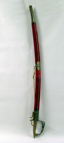 An extra large metal sword with red sheath used by background actors in "Indiana Jones and the Temple of Doom" (1984). (Approx. 38" long). Oversized item. Additional shipping charges required.