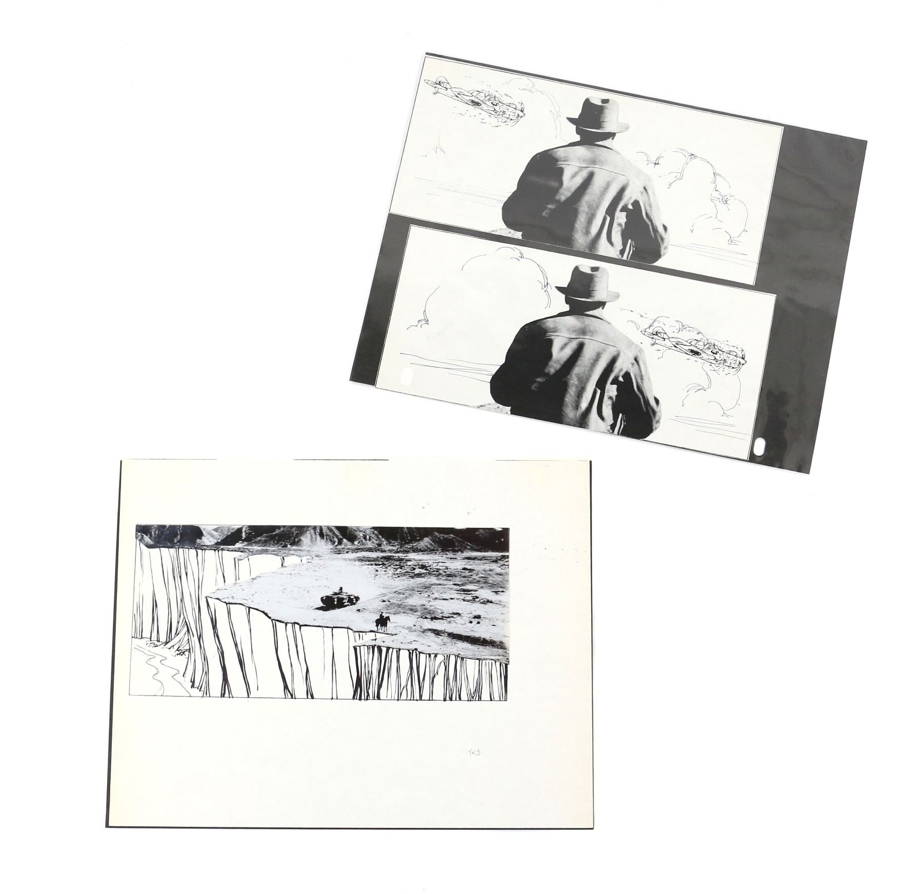 Indiana Jones and The Last Crusade (1989) Two different partly hand drawn production used storyboards depicting Indiana watching a plane hit a flock of birds and a tank going over a cliff. Individually mounted and board backed within acetate baggies, each 21 x 29cm (2).Provenance: With lot label from Profiles In History (Auction 47 - Lot 975 & 976).