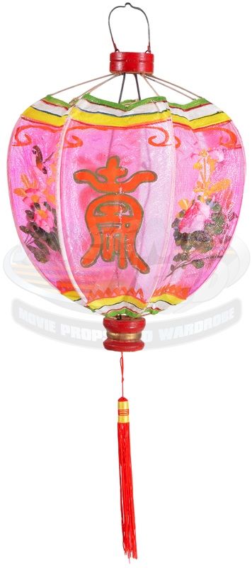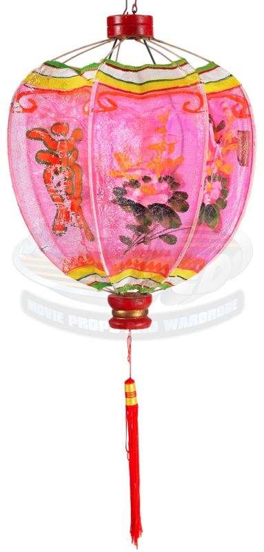 (Paramount, 1984) This prop street globe was custom made by the production for use as set dressing during filming of the car chase scene of Indy's escape from "Club Obi Wan". The globe is made of a wire frame with plastic screen that features hand painted Chinese style graphics. Measures 26.5" from the top to the bottom of the tassel.