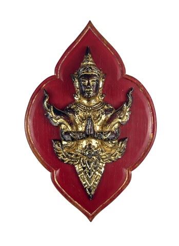 From the worldwide franchise Indiana Jones and the Temple of Doom (1984) is this very unique production acquired red wood with metal Buddhist design wall decoration. This was used in the production of the film and measures approximately 12" x 8".