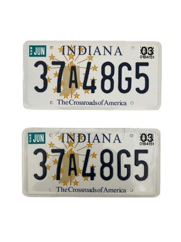 A pair of Indiana prop license plates. Made of metal. Used in various movies /tv shows.