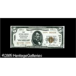 <B>Indiana, PA</B></I> - $5 1929 Ty. 2 <B>First NB</B></I> Ch. # 14098<BR>Although the paper surfaces are of unquestionable Gem quality, the centering mandates a grade of <B>Choice Crisp Uncirculated.</B></I> While three issuing banks were located here, only this institution issued the $5 Type 2. 14000 charter numbers are eagerly sought by members of the collecting fraternity and this example is an especially fresh and original representative. Lot:16967