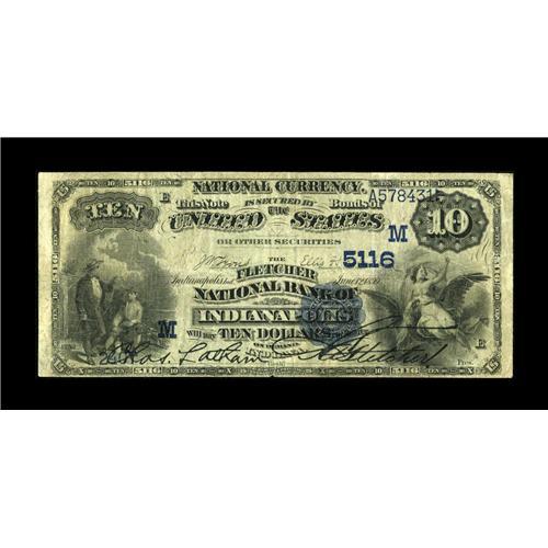<B>Indianapolis, IN</B></I> - $10 1882 Date Back Fr. 545 <B>The Fletcher NB</B></I> Ch. # (M)5116<BR>While the census from here stands at a seemingly available 21 large size, almost all are Brown Backs. This addition to the census is only the fourth 1882 Date Back of any denomination to surface and makes just two of the $10 denomination of this variety now known. This issuer was in business from 1898 until 1910. We expect to see this problem free <B>Fine</B></I> offering sell for roughly...<BR><I>From The Bill and Kathy Stella Currency Collection</B></I><BR><BR><b>Shipping:</b> Coin/Currency (<a target="_blank" href="http://www.heritageauctions.com/common/shipping.php">view shipping information</a>)