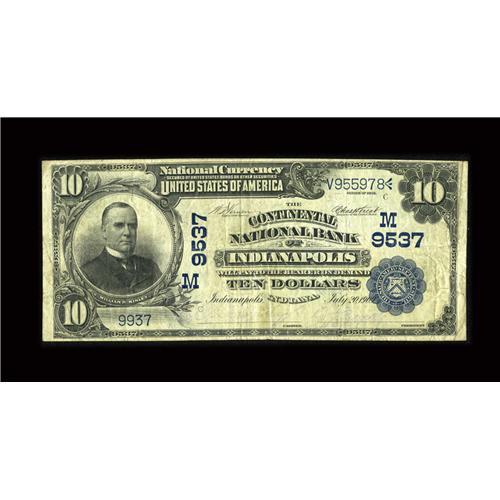 <B>Indianapolis, IN</B></I> - $10 1902 Date Back Fr. 618 <B>The Continental NB</B></I> Ch. # (M)9537<BR>A decent large example from one of this city's scarcer banks. <B>Fine+.</B></I><BR><BR><b>Shipping:</b> Coin/Currency (<a target="_blank" href="http://www.heritageauctions.com/common/shipping.php">view shipping information</a>)