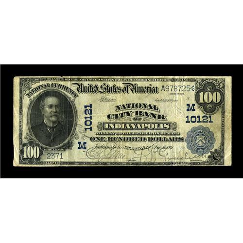 <B>Indianapolis, IN</B></I> - $100 1902 Date Back Fr. 693 <B>National City Bank</B></I> Ch. # (M)10121<BR>This <B>Very Fine</B></I> example is just the third $100 Date Back to be traced from this otherwise reasonably available Indianapolis issuer.<BR><BR><b>Shipping:</b> Coin/Currency (<a target="_blank" href="http://www.heritageauctions.com/common/shipping.php">view shipping information</a>)