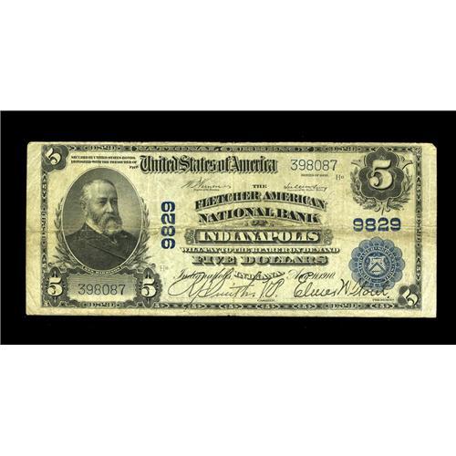 <B>Indianapolis, IN</B></I> - $5 1902 Plain Back Fr. 601 <B>The Fletcher American NB</B></I> Ch. # 9829<BR>A nice <B>Fine</B></I> large example with clear signatures.