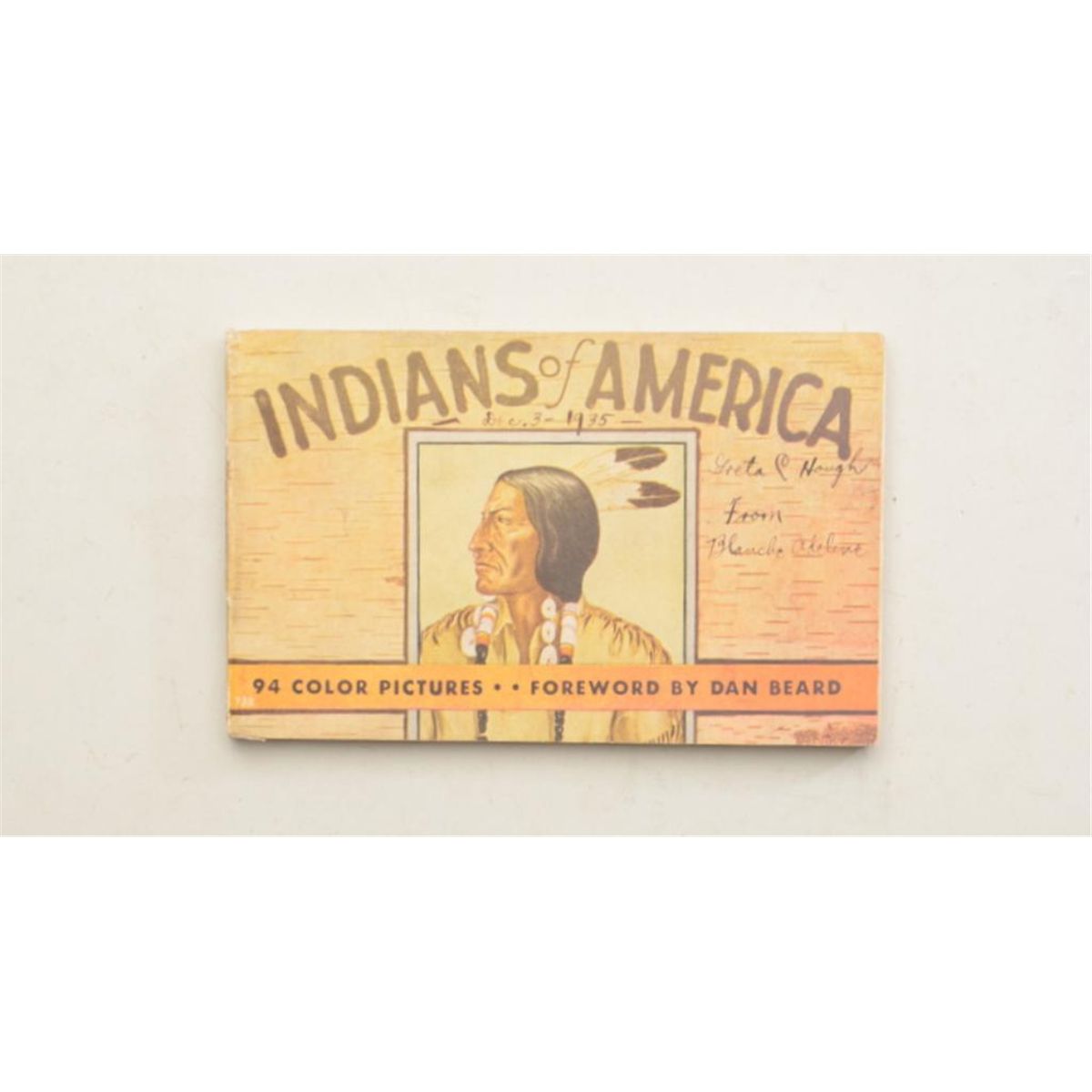 “Indians of America” small booklet circa 1935 in excellent condition with color drawings and summaries of the various tribes of America, approx. 3-1/2” x 5-1/2”; collectible and educational. Est.: $25-$50.