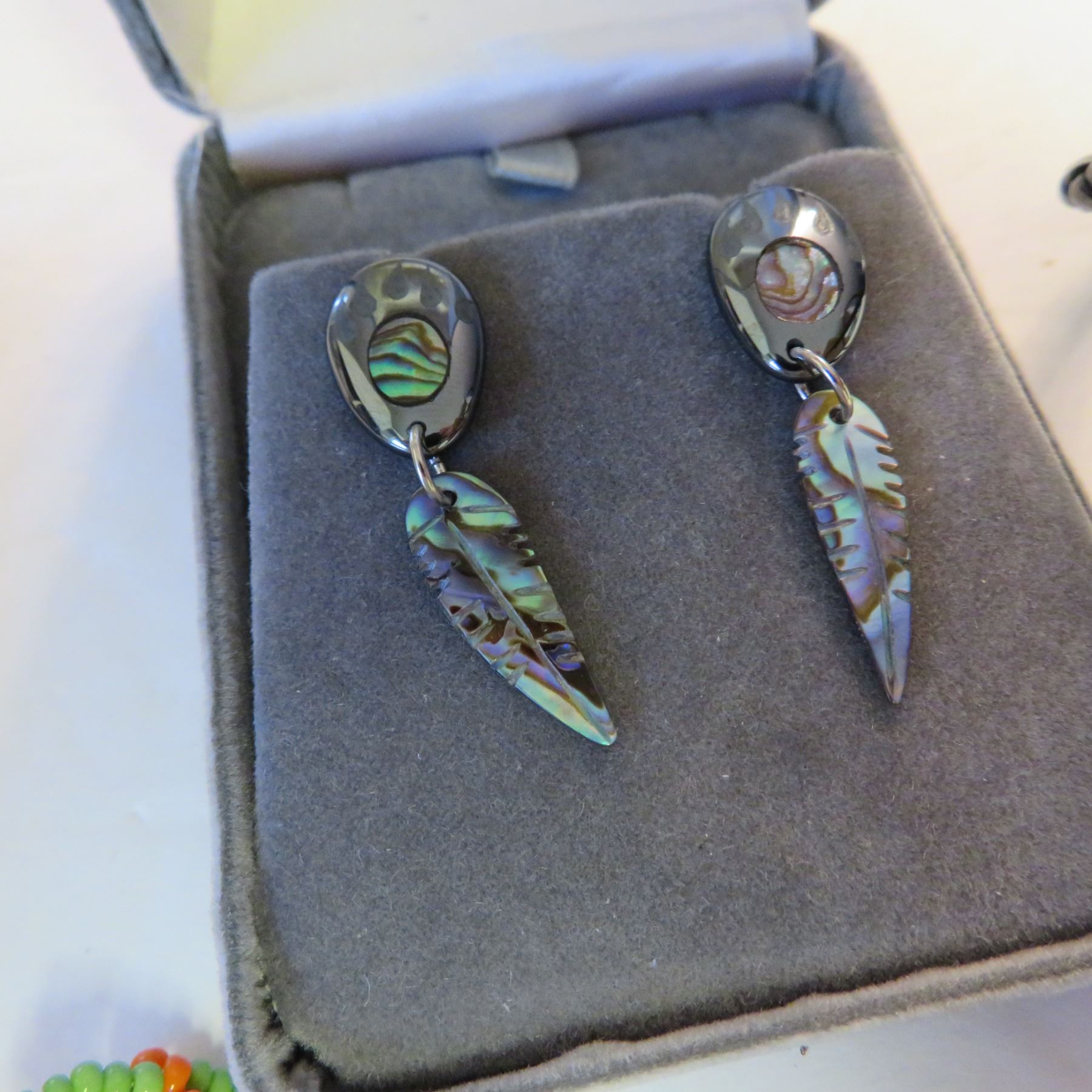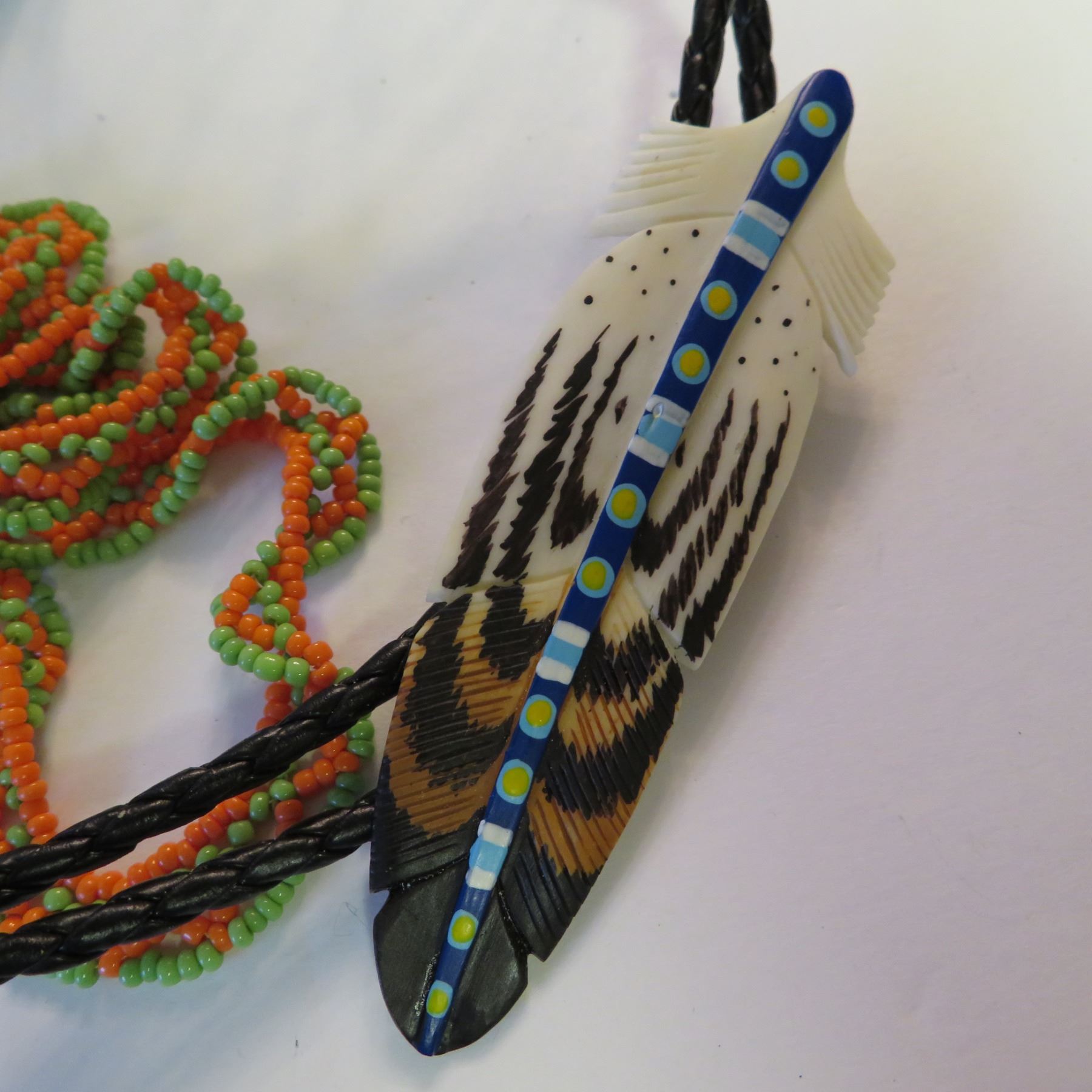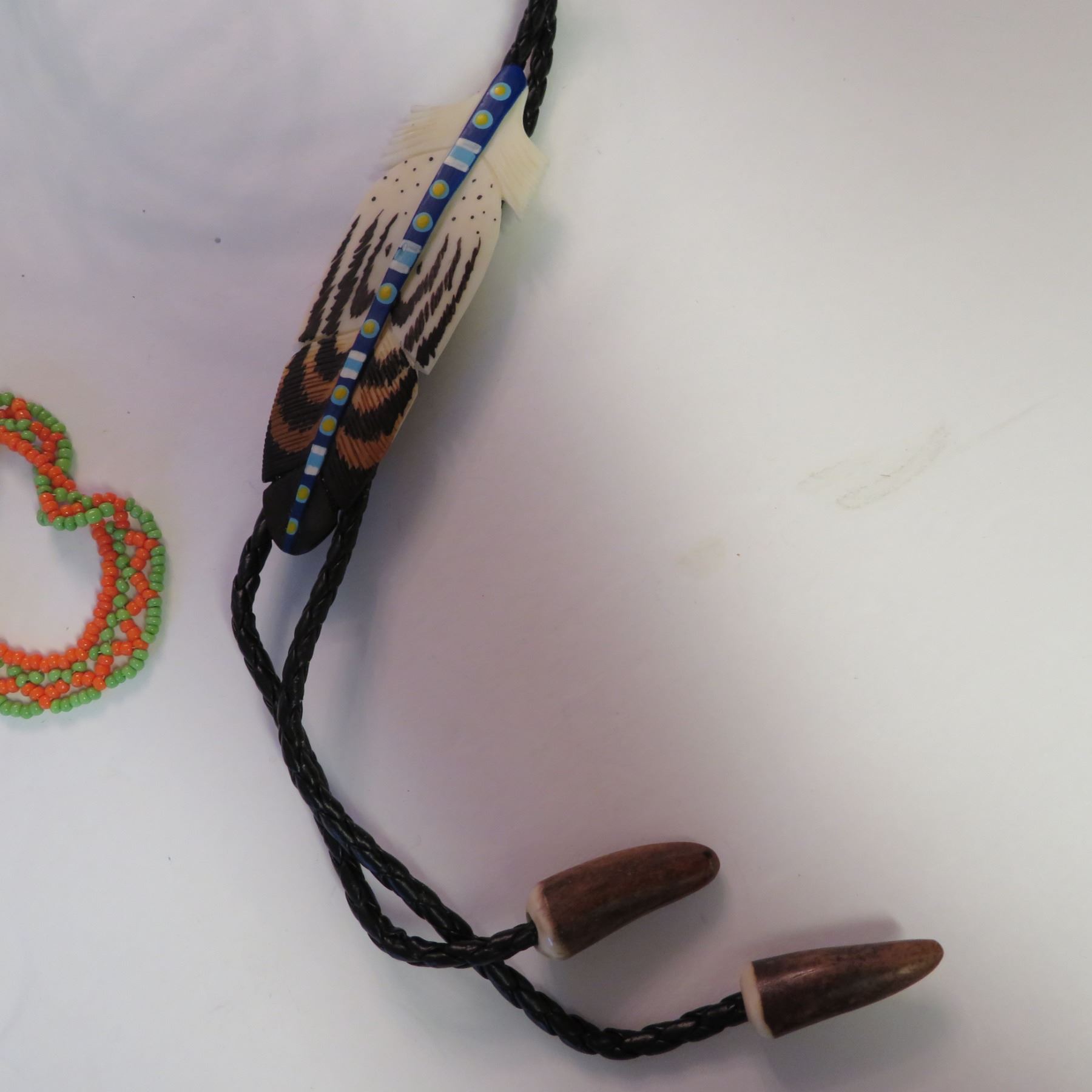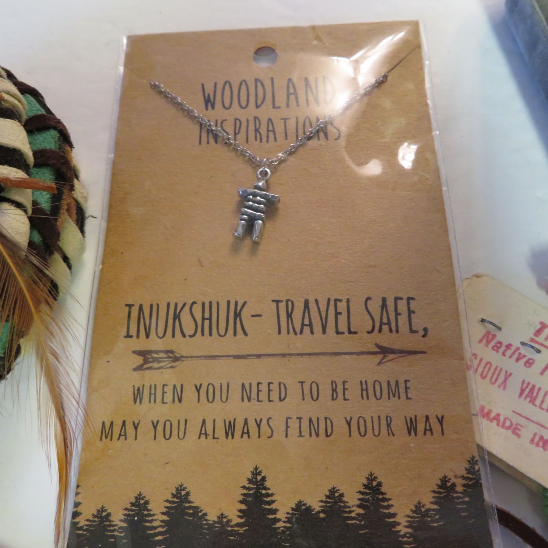 Includes Inukshuk necklace, bear paw earrings, dream catcher earrings, a small purse with feathers, a soapstone necklace, a vintage necklace made in Canada "Native Indian Crafted Sioux Valler Reservation", and a beautiful feather bolo tie.
