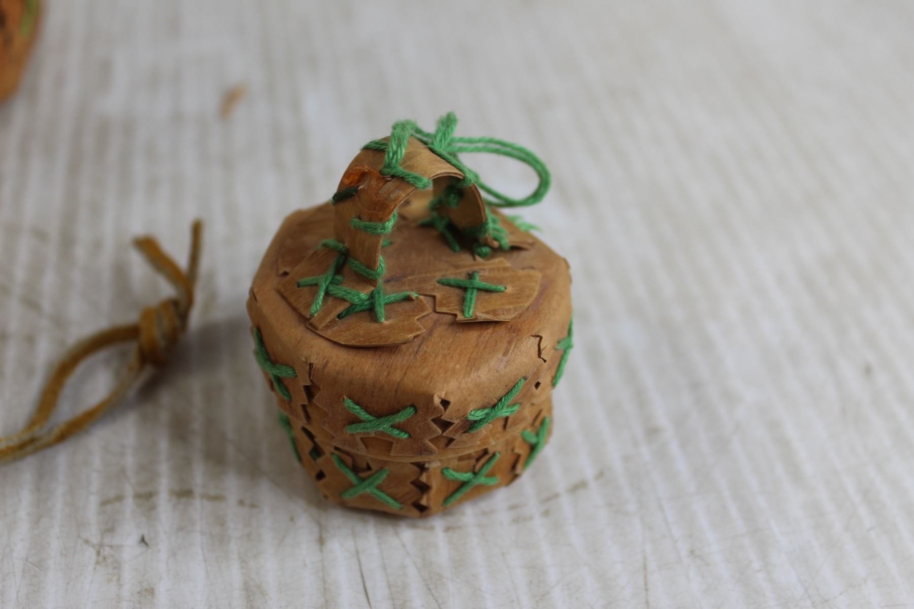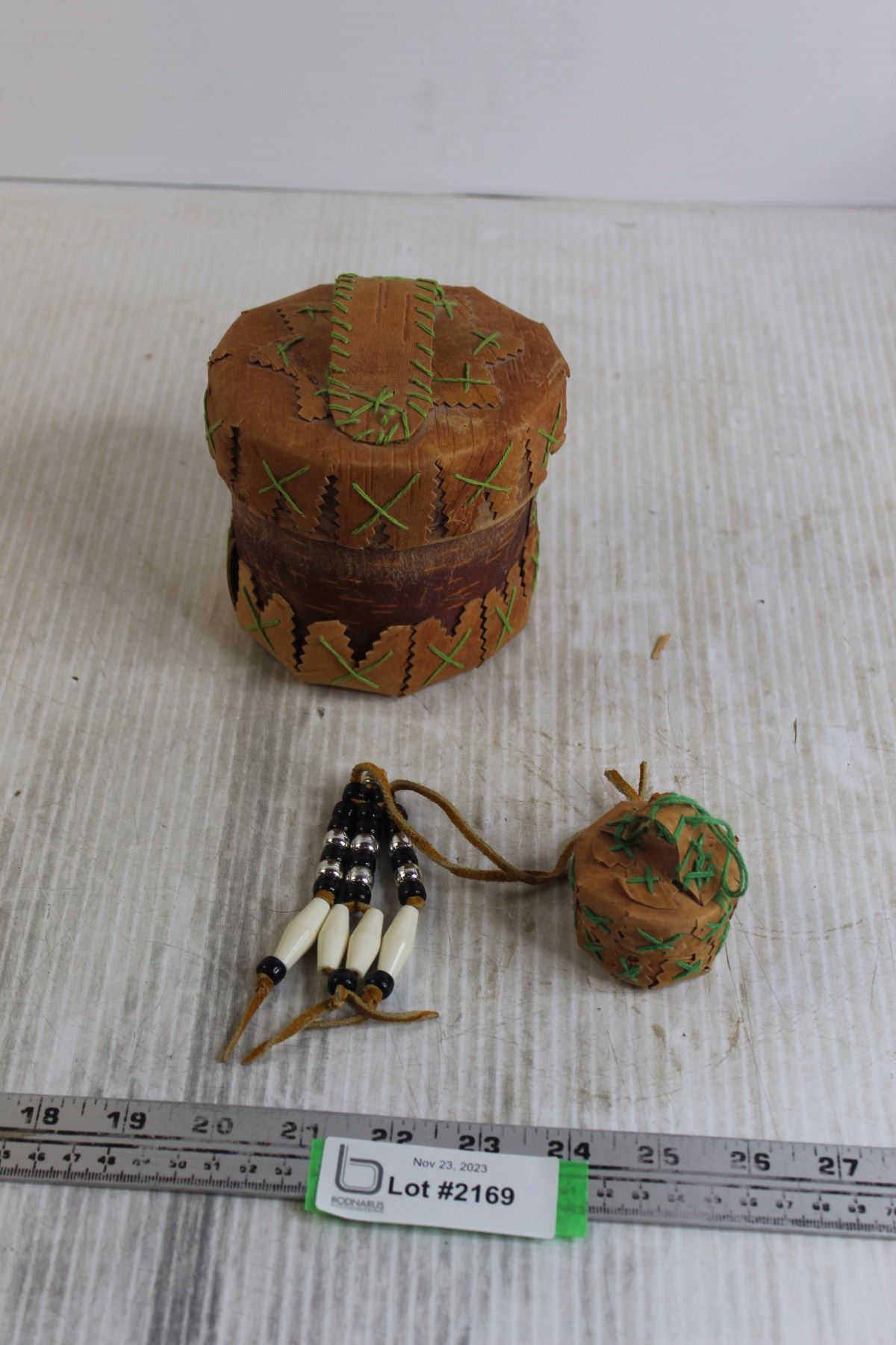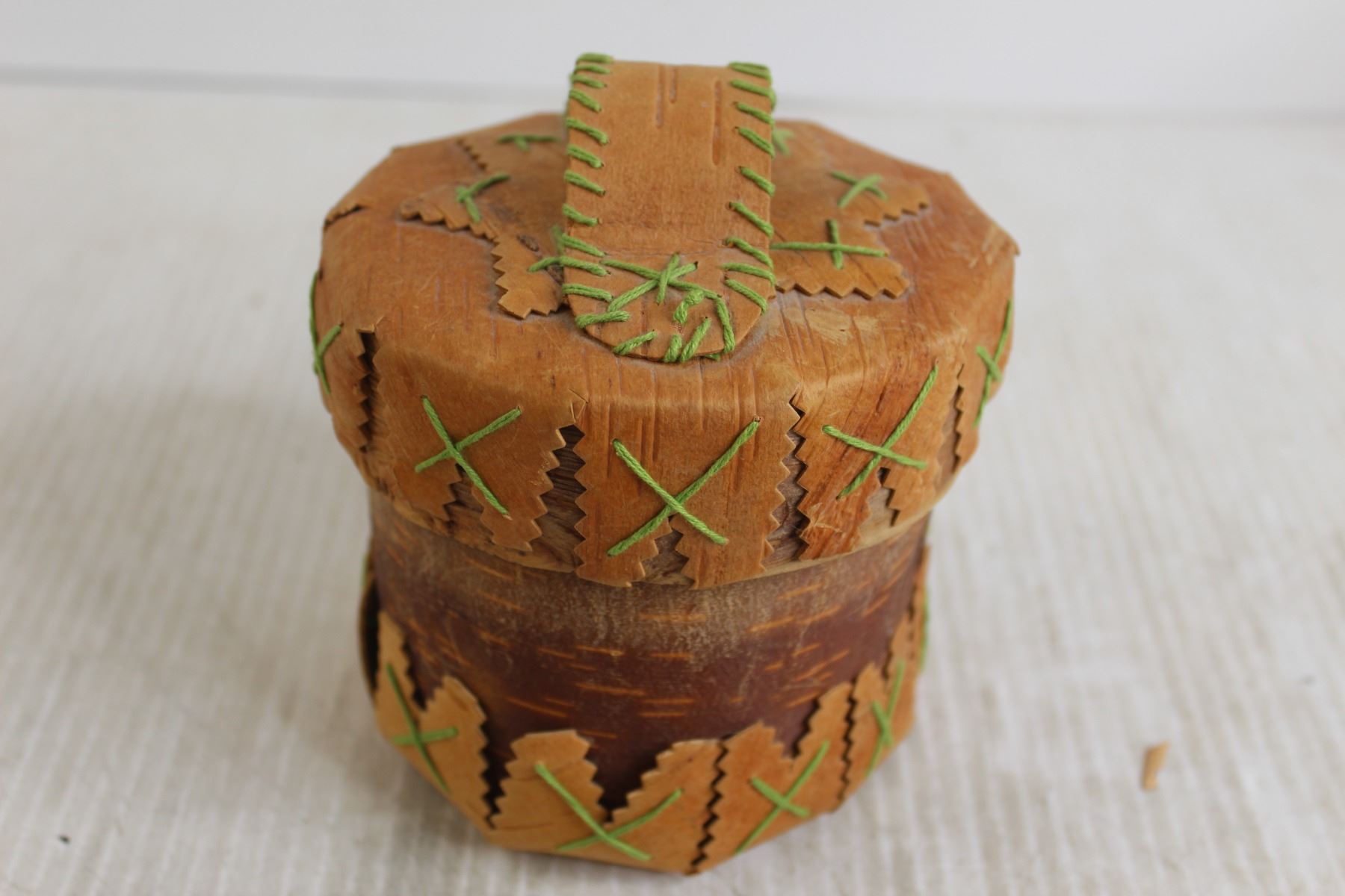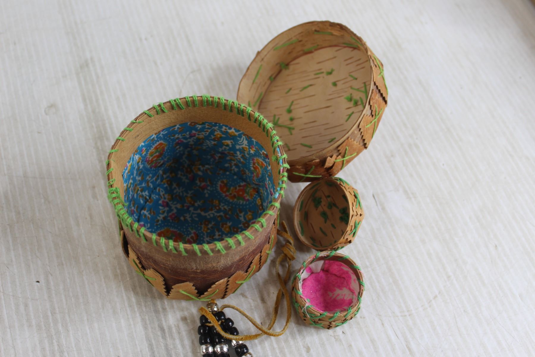 Indigenous - Made Small Birch Bark Container - Contains Tiny Container + Bead Work