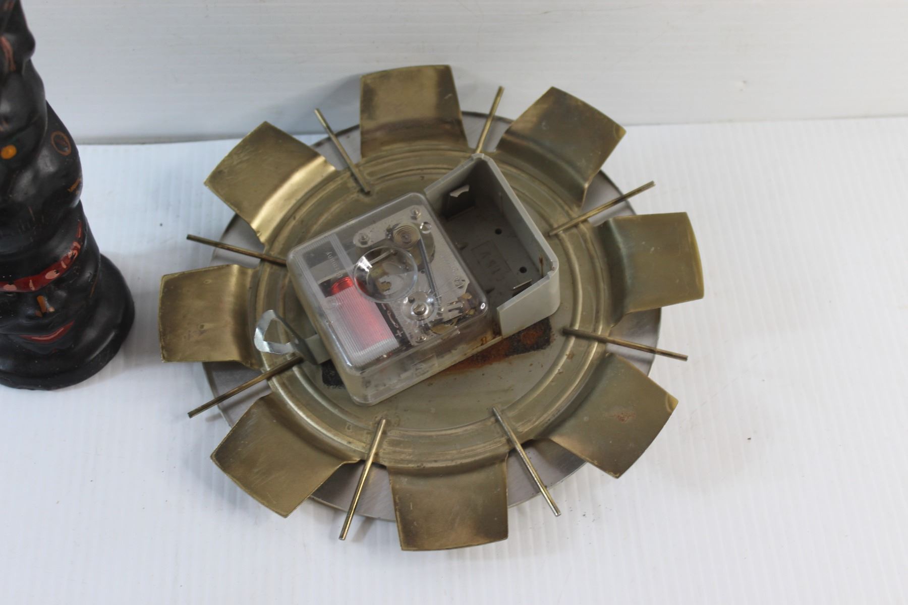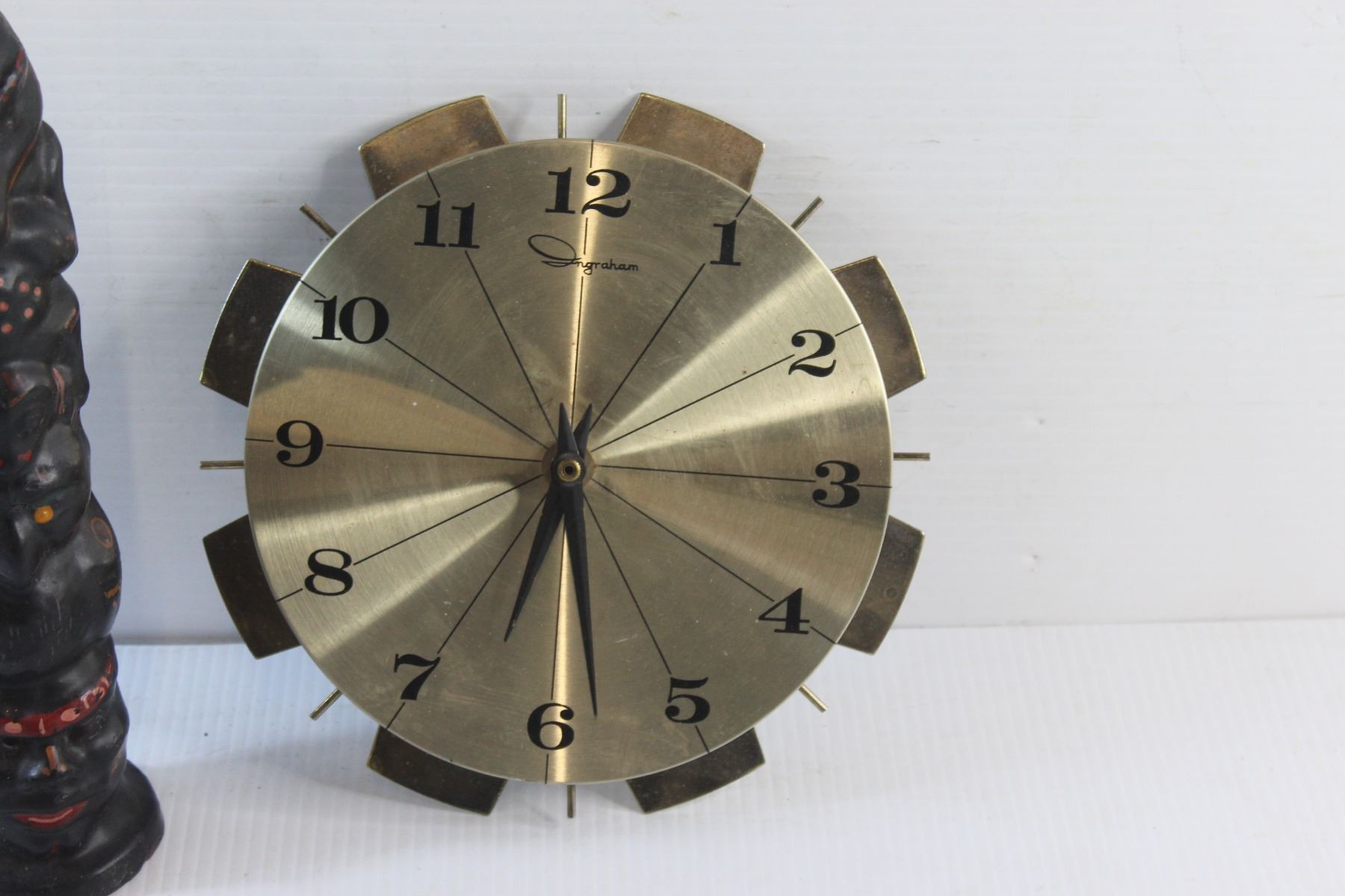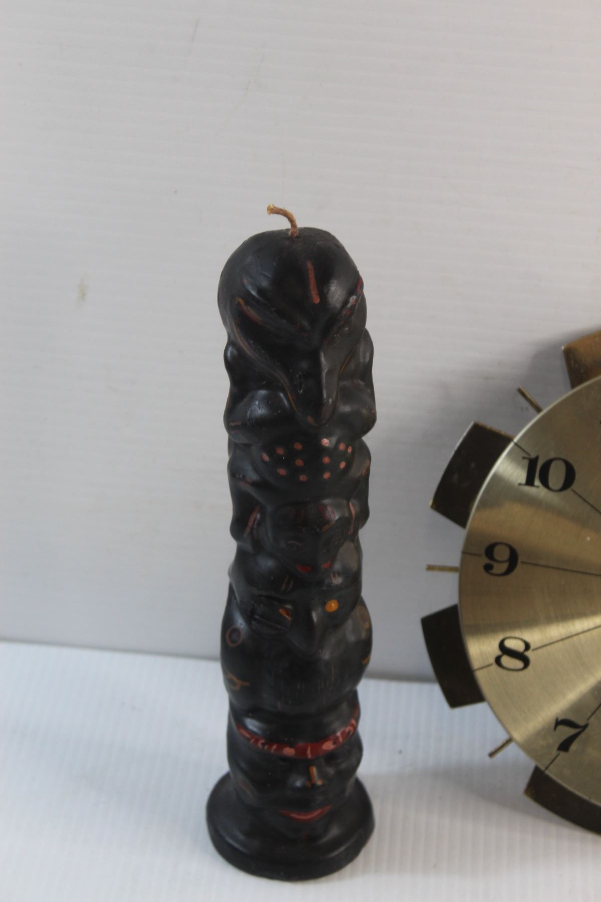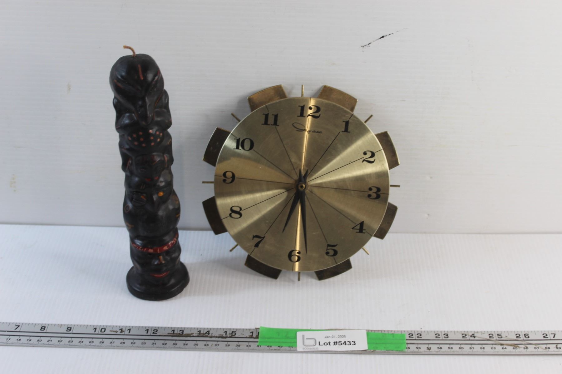 Indigenous Totem Candle and Brass Wall Clock - As Is