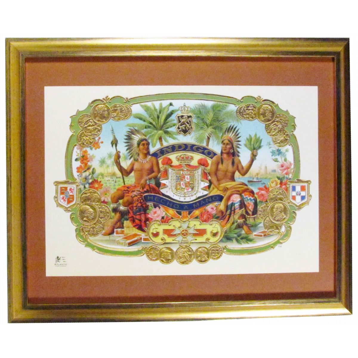Indigo Cigars "Cigar Label" Paper Sign. Atlantic Cigar Co. Excellent condition. Framed under glass. 17 1/2 X 12 inches image only.