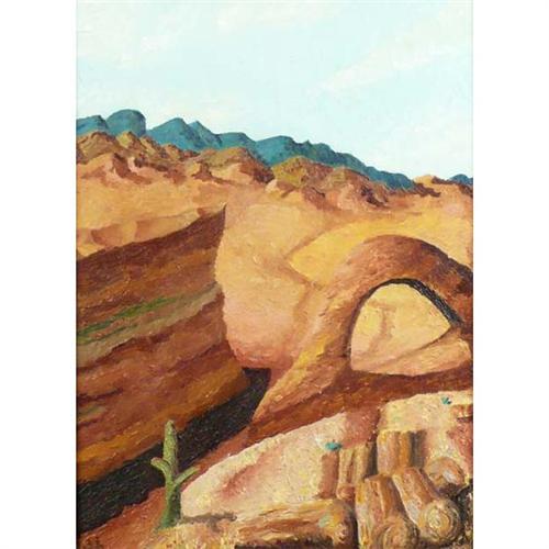 Indiscerible Western Landscape Oil on Canvas Signed lower left 16 1/4" x 12 1/2"