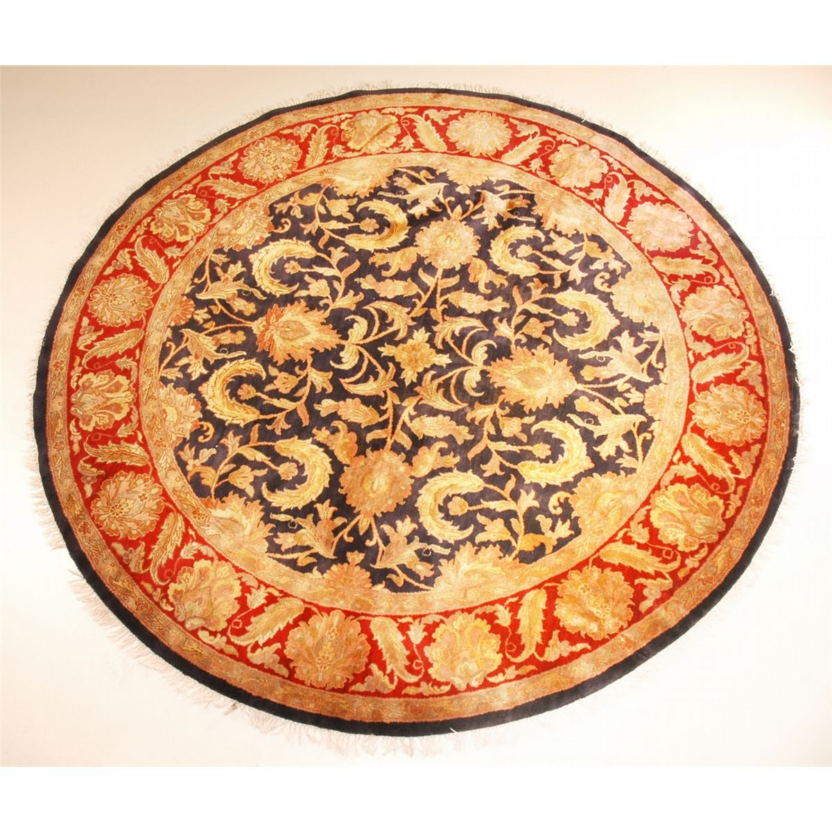 Hand Woven Indo Agra Rug, made out of wool. Blue, Gold and red tones. 9'3" x 9'3"