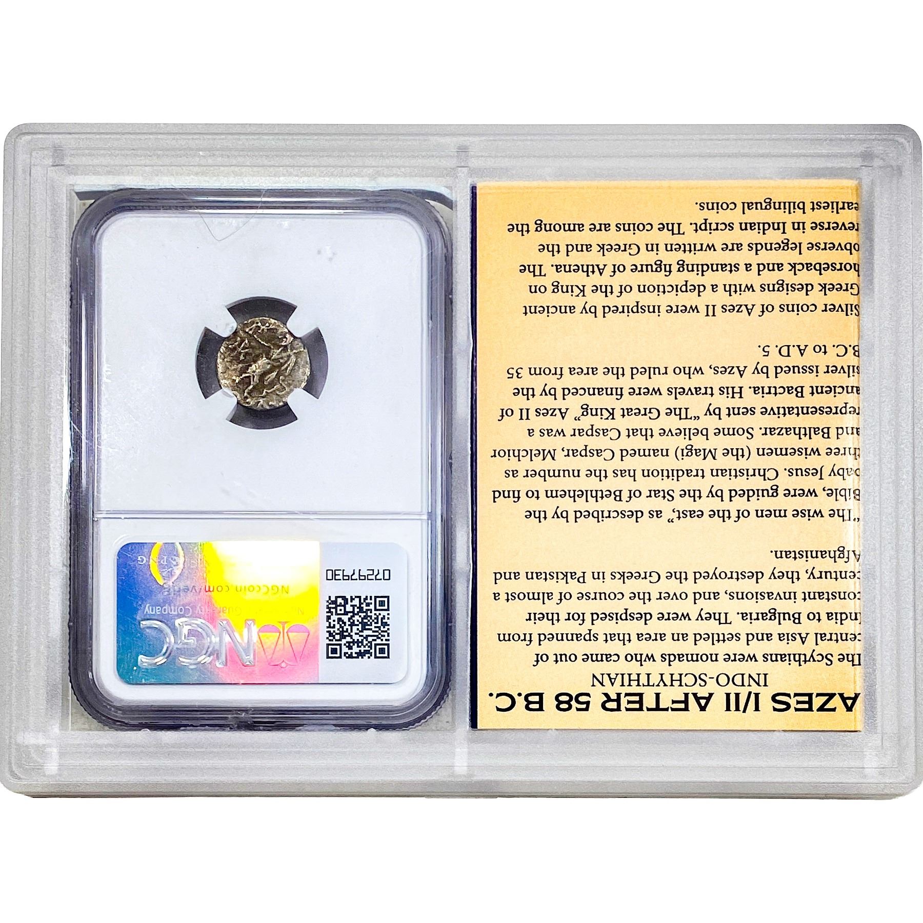 Indo Azes I/II, after c.58 BC Silver Drachm NGC F