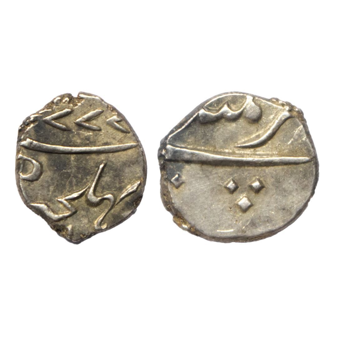 Indo-French, Mahe, Pondicherry (Bhulcheri) Mint, Silver 1/5 Rupee, 2.25 gms, 1777 AD, Obv: Francis company in Persian legend, Rev: sana, zarb Bhulcheri & letter "P" for pondichery, (KM #67), very fine, scarce.