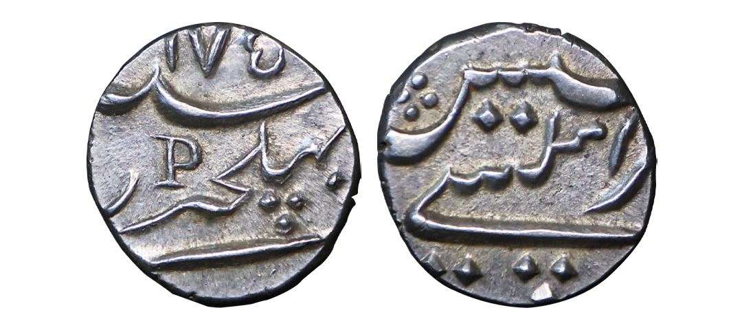 Indo - French, Silver Fanon or 1/5 Rupee, 2.34g, struck at Pondicherry Mint for Mahé with letter P, AH 175X (KM 67). Extremely Fine.