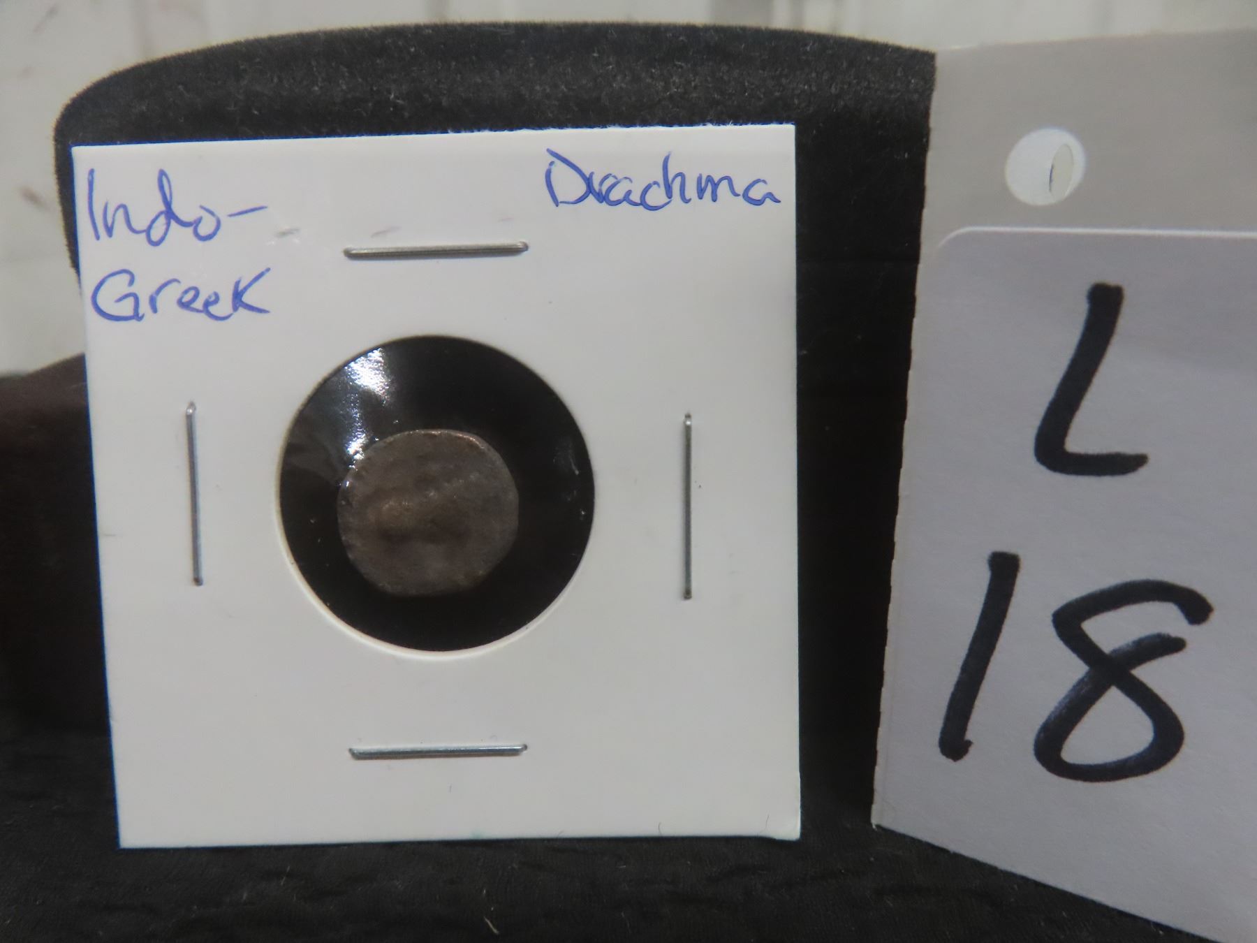 An ancient Indo-Greek silver drachma, dating approximately between the 2nd and 1st century BCE. The Indo-Greek Kingdom emerged after the campaigns of Alexander the Great and represents one of the most fascinating cultural intersections in ancient history, blending Greek and Indian artistic and political traditions.