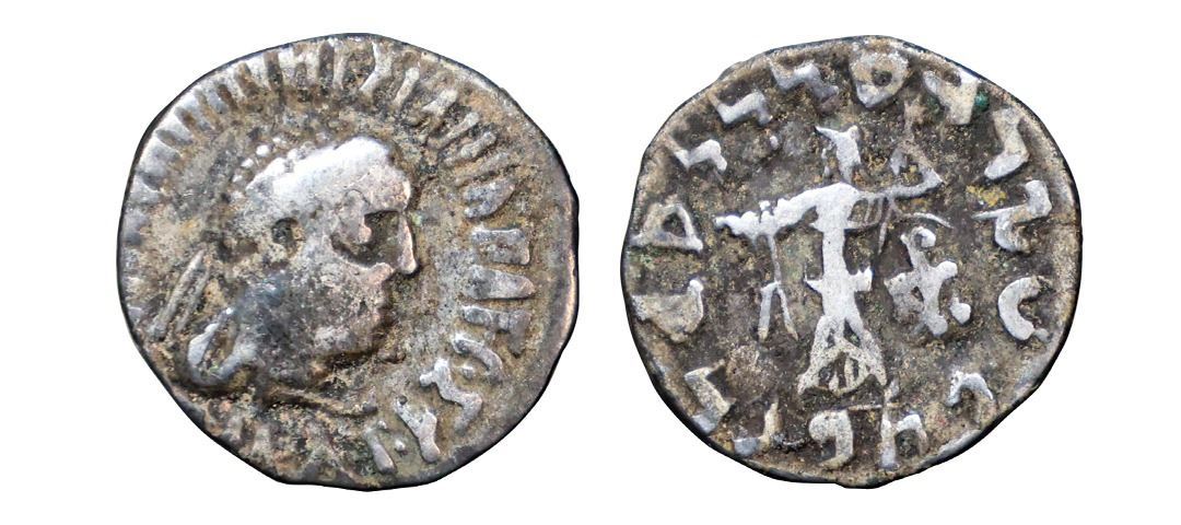 Indo-Greeks, Apollodotus II (c. 80-65 BC), Silver Drachm, 2.29 gms, MIG # 425l, fine, very scarce.