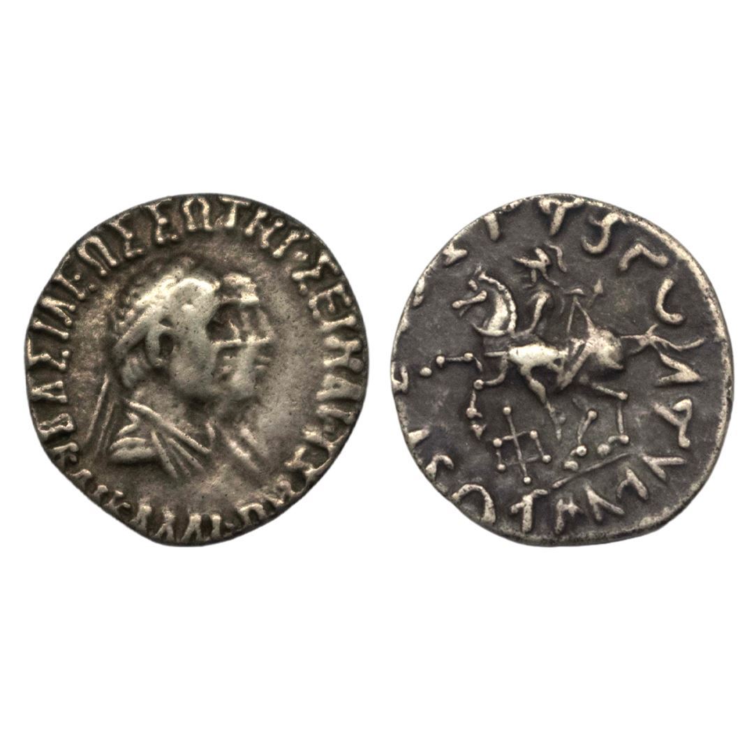 Indo-Greeks, Hermaios with Queen Calliope (c. 90-70 BC), Silver Drachm, 2.15Grms.