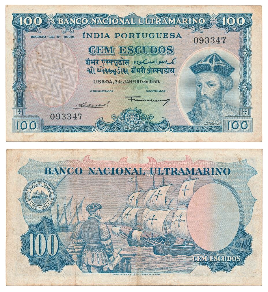 Indo-Portuguese, 100 Escudos, 7th issue, 1959, Banco Nacional Ultramarino, (J&R 12.37.5). Very Fine+, Rare.