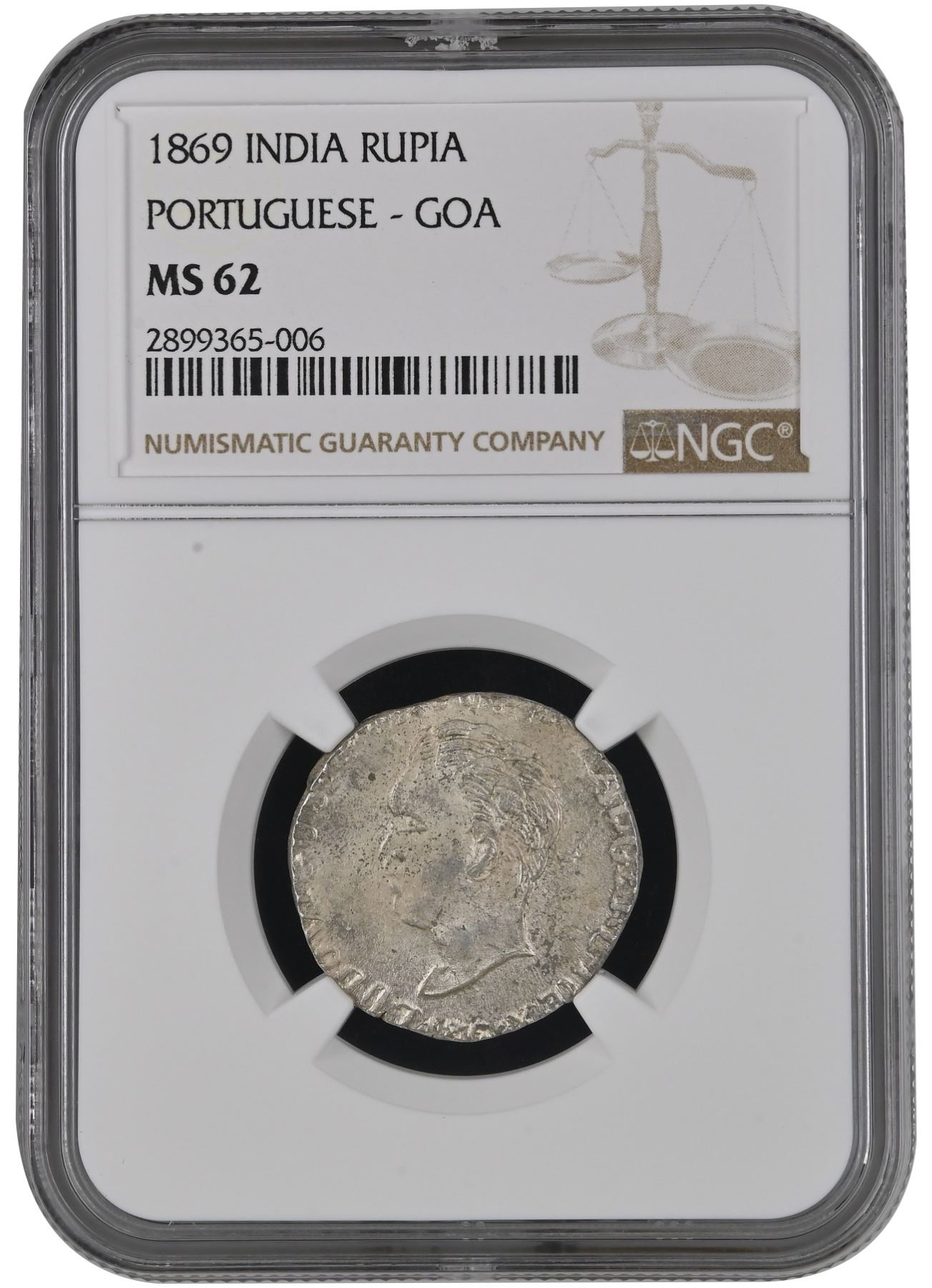 Indo-Potuguese, Goa, Luiz I (1861-1889 AD), Silver Rupia, 1869 AD, Obv: bust to left of Luiz I. Rev: Value & Goa within a wreath, (KM 282), graded & slabed by NGC as MS 62, Very Rare in this grade.