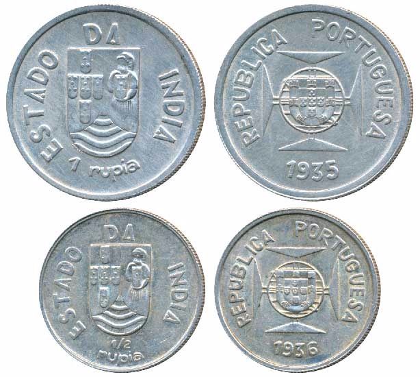 Silver Rupia and ½ Rupia, 1935 and 1936 (KM 23, 22). Uncirculated. (2)