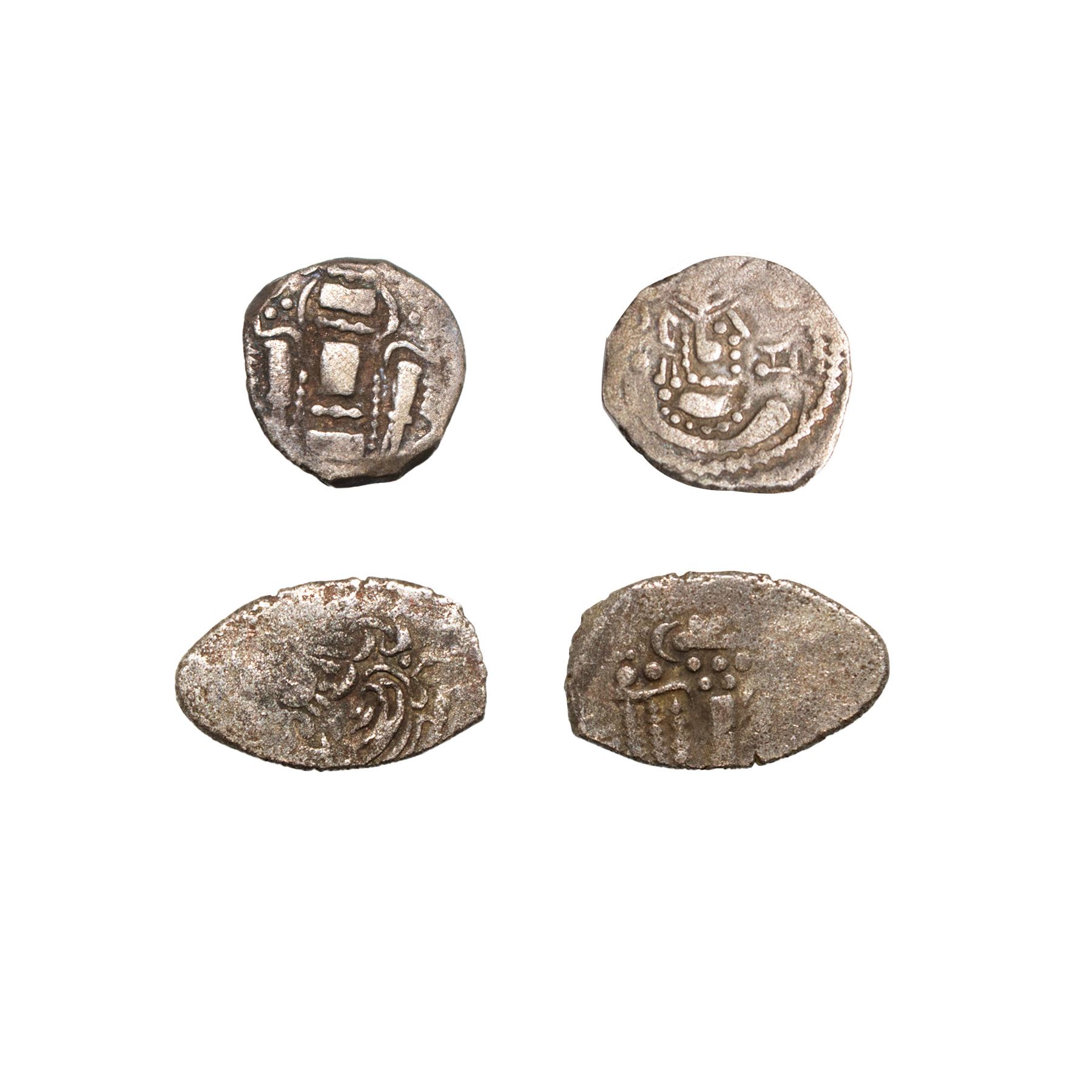 Indo-Sassanian, Anonymous issue, Rajasthan Region, Silver Drachma, 3.84grms & 4.08grms, Obv: Crowned bust of king facing to right, Rev: Fire altar with flanked by attendents.. Very fine
