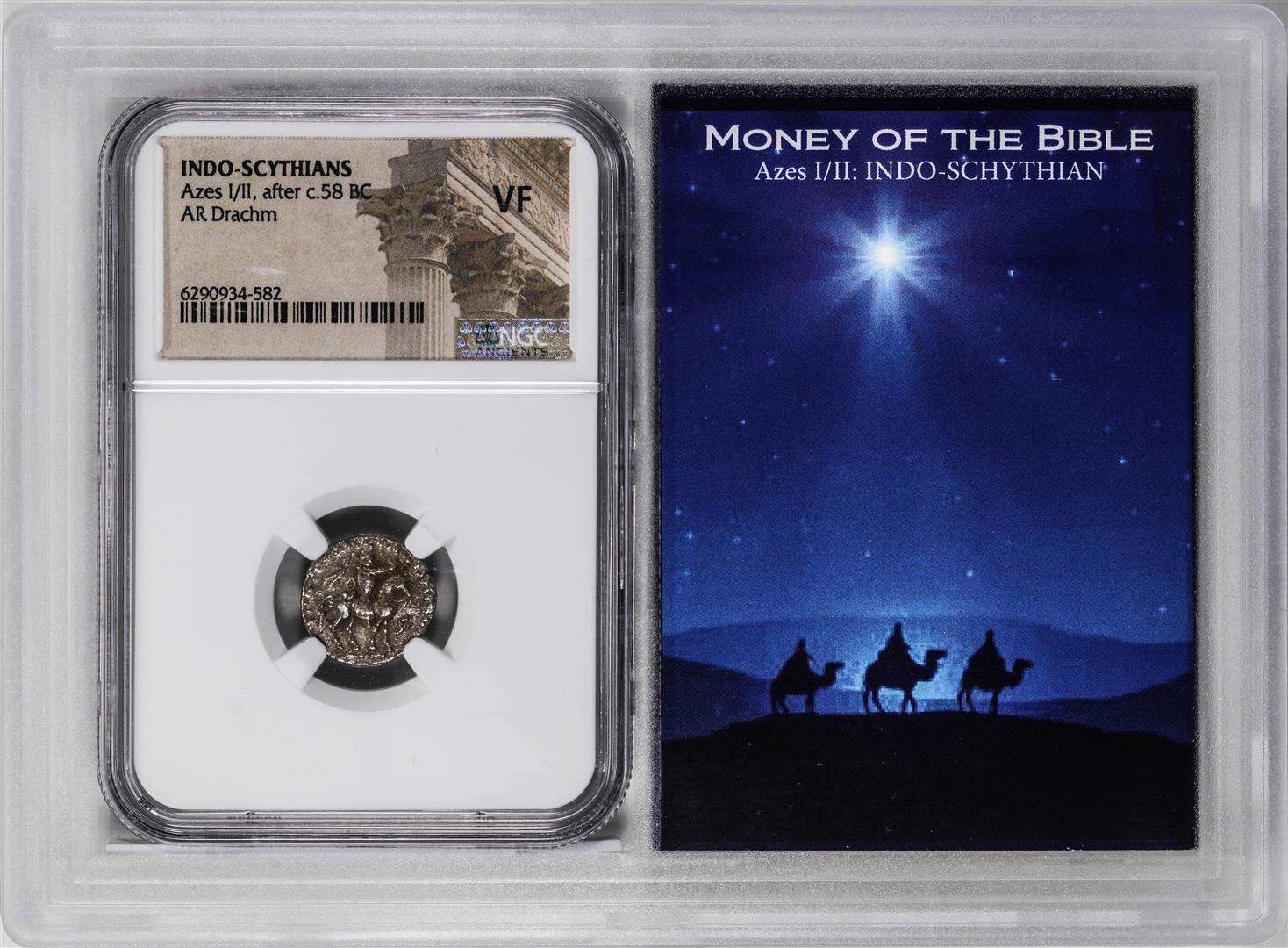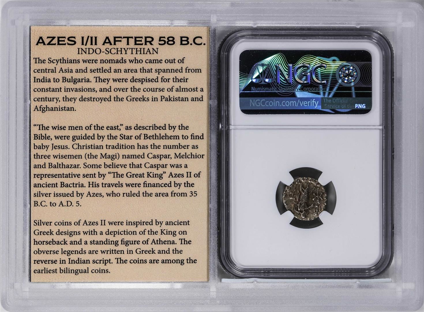 Indo-Scythians Azes I/II, After c.58 BC AR Drachm Ancient Coin NGC VF Story Box