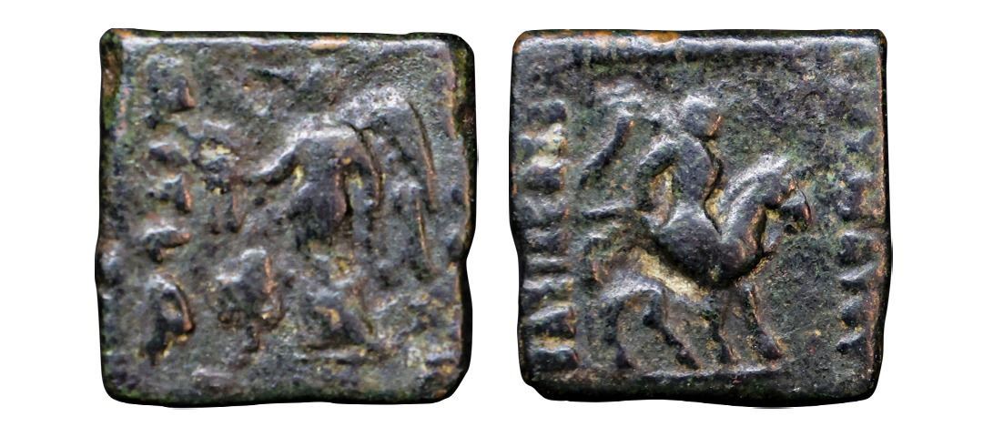 Indo Scythians, Maues (125-85 BC), Copper Unit, 9.03 gms, Obv. King right on horseback, Rev. Nike standing left, Senior #16.1, fine, rare.