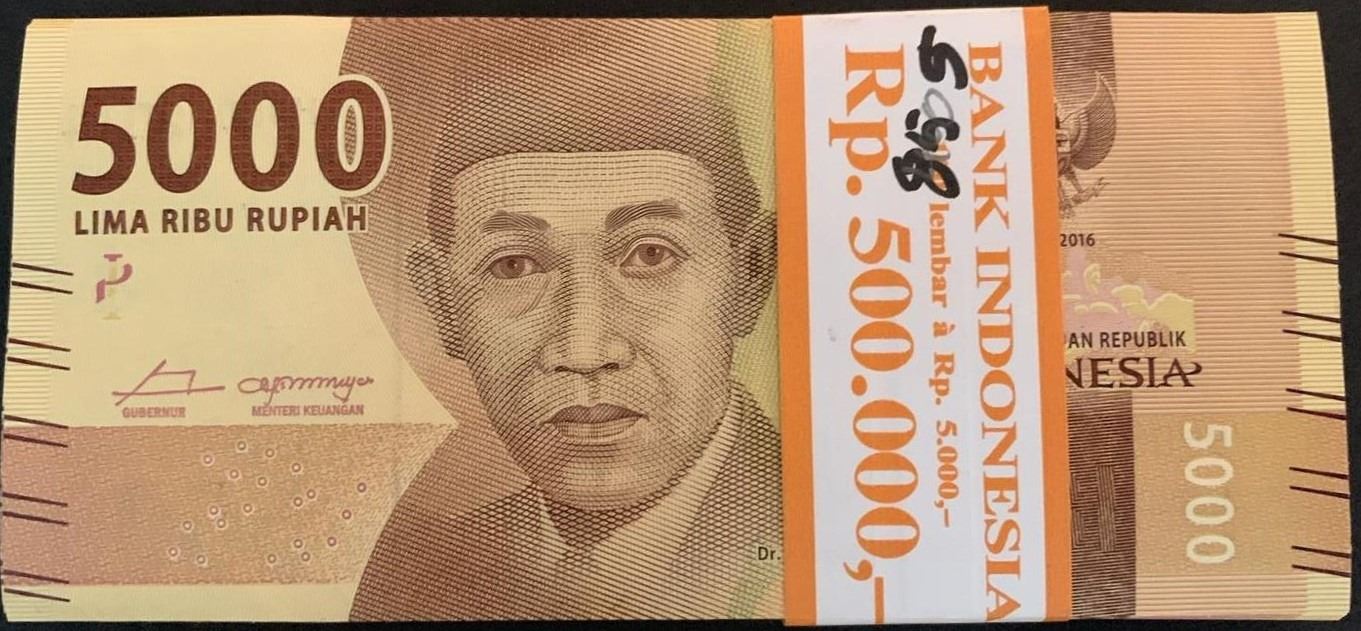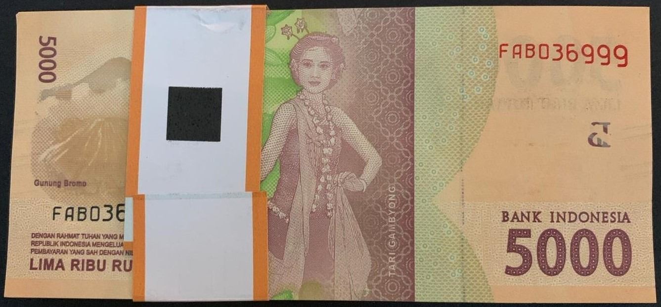 Indonesia, 5.000 Rupiah, 2016, UNC, p156, BUNDLEbr/100 banknotes in series; serial number of the las