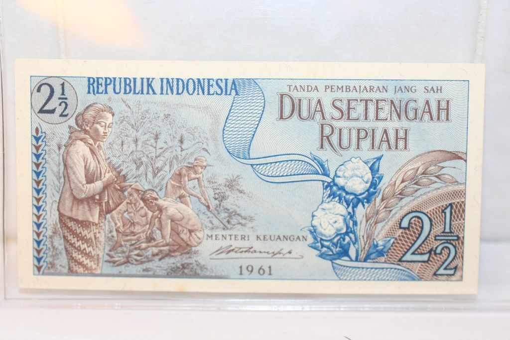 This lot is a 1961 indonesia 2 1/2 rupiah note