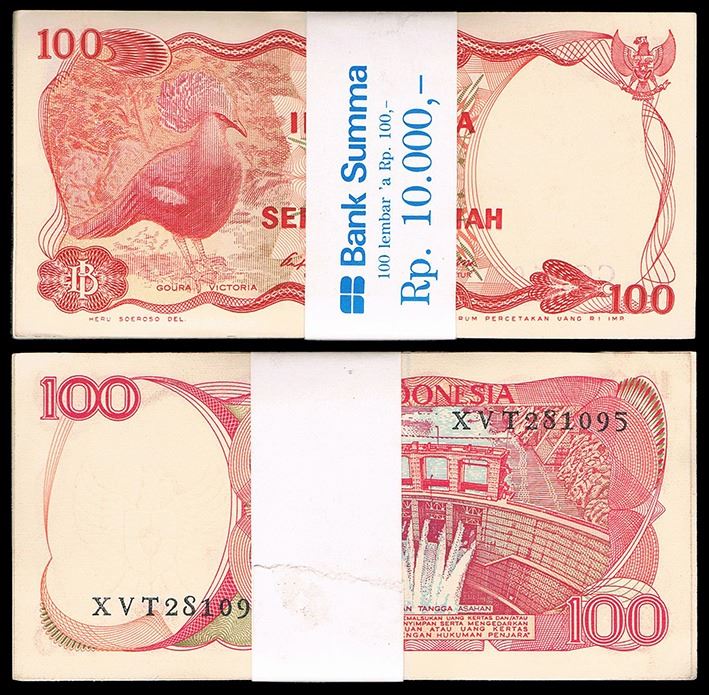 Indonesia One Hundred Rupiah (P.11a), Bundle, 1963