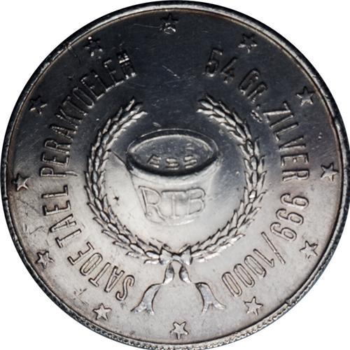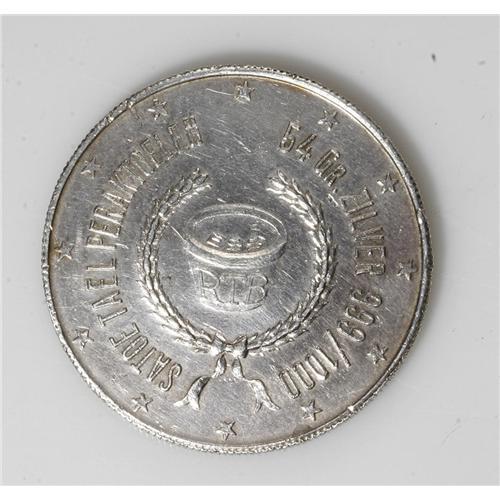 <B>Indonesia. Silver Tael ND,</B></I> Native with a piculan on his shoulder/Border of 12 stars, Legend: 54 GR. ZILVER 999/1000-SATOE TAEL PERAKTOELEN, within wreath a melting crucible, Sch-1456(RRR), XF. Produced in Djakarta at the Assaying and Refining Workshops Ltd. The first that we have seen of this extremely rare tael..<BR><BR><b>Shipping:</b> Coin/Currency (<a target="_blank" href="http://www.heritageauctions.com/common/shipping.php">view shipping information</a>)