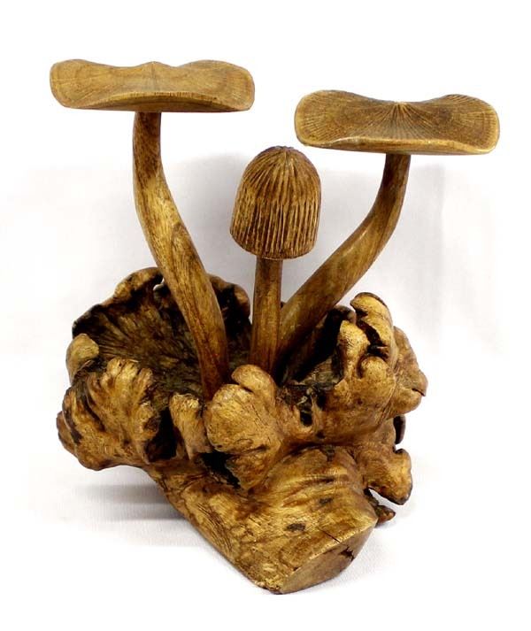 Indonesian Carved Chinaberry Wood Burl Mushroom Statue, measures 8.5'' x 8.5''