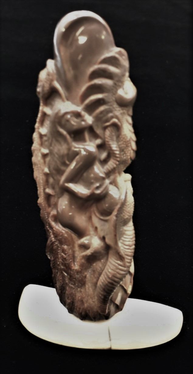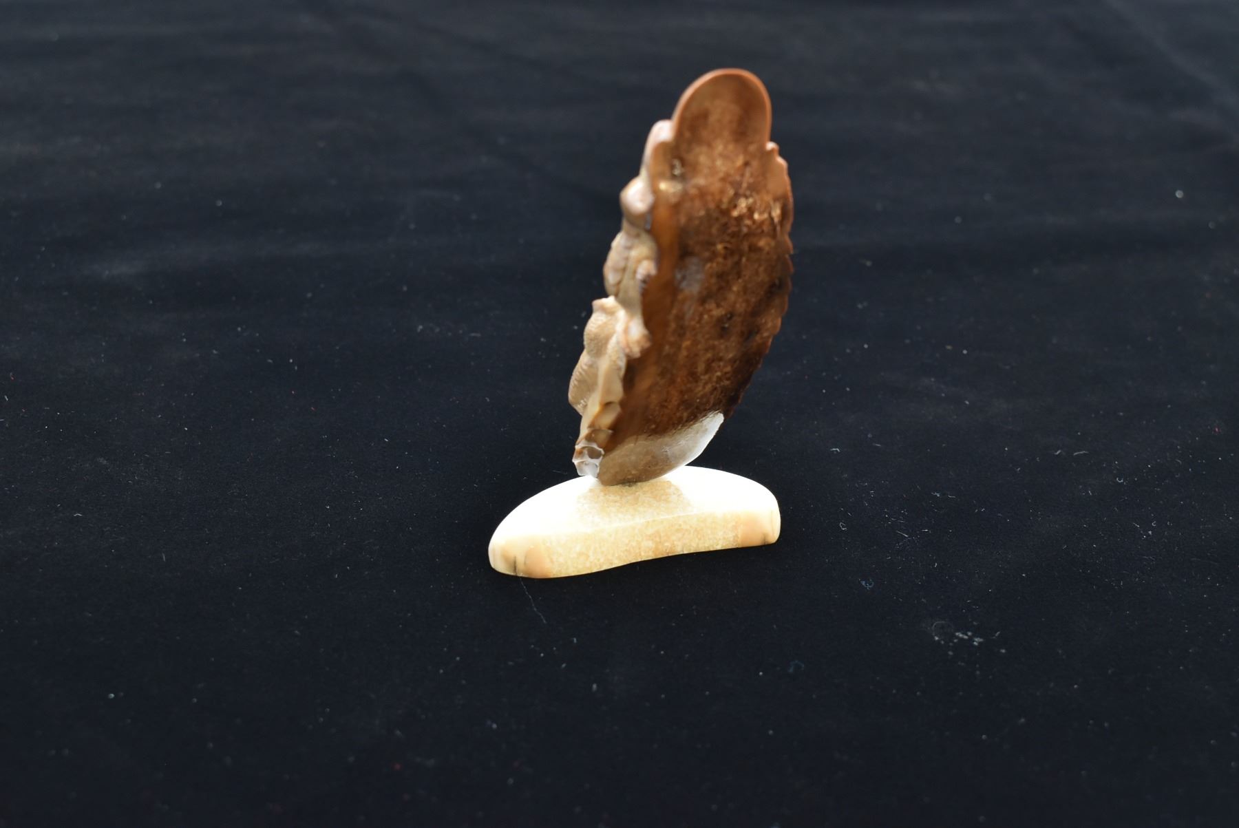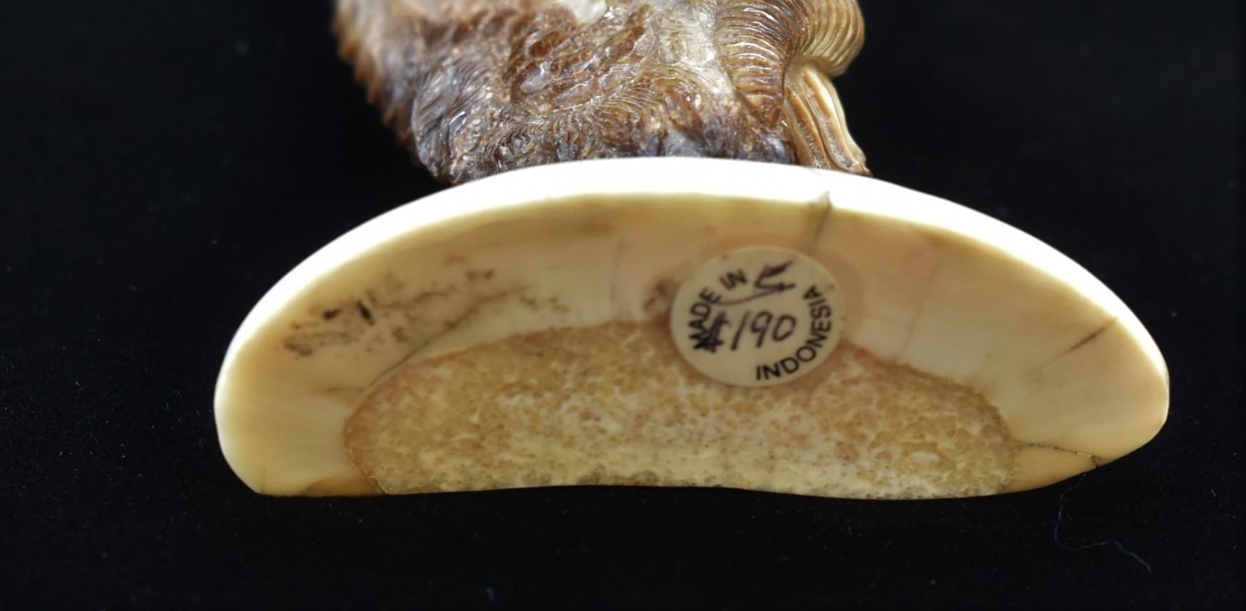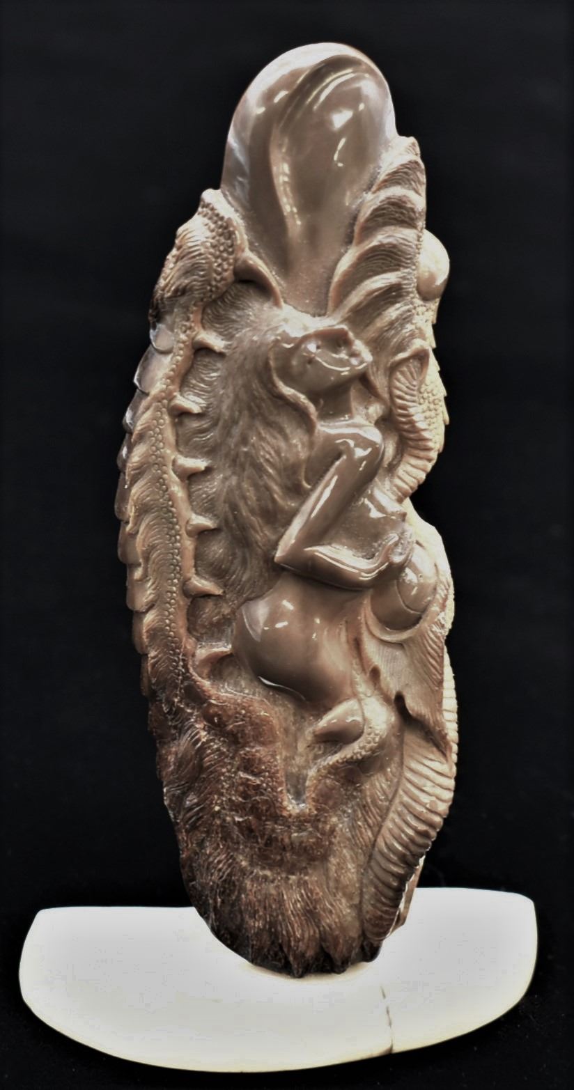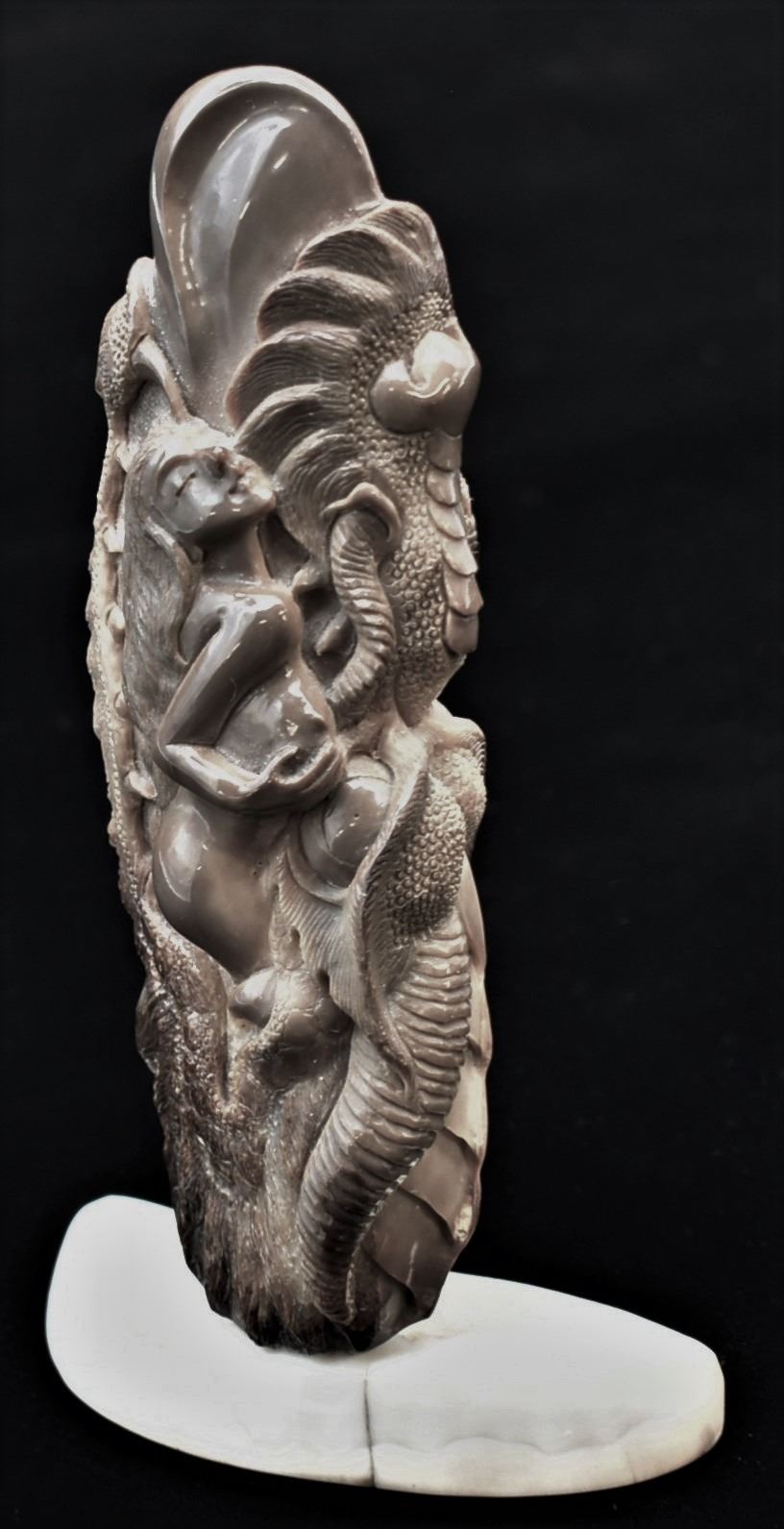 Indonesian Carved Nude Woman Figure, centipede, along with other arthopods, on carved bone base, measures 3.75''H x 2''W x 1''Deep, original tag on the bottom
