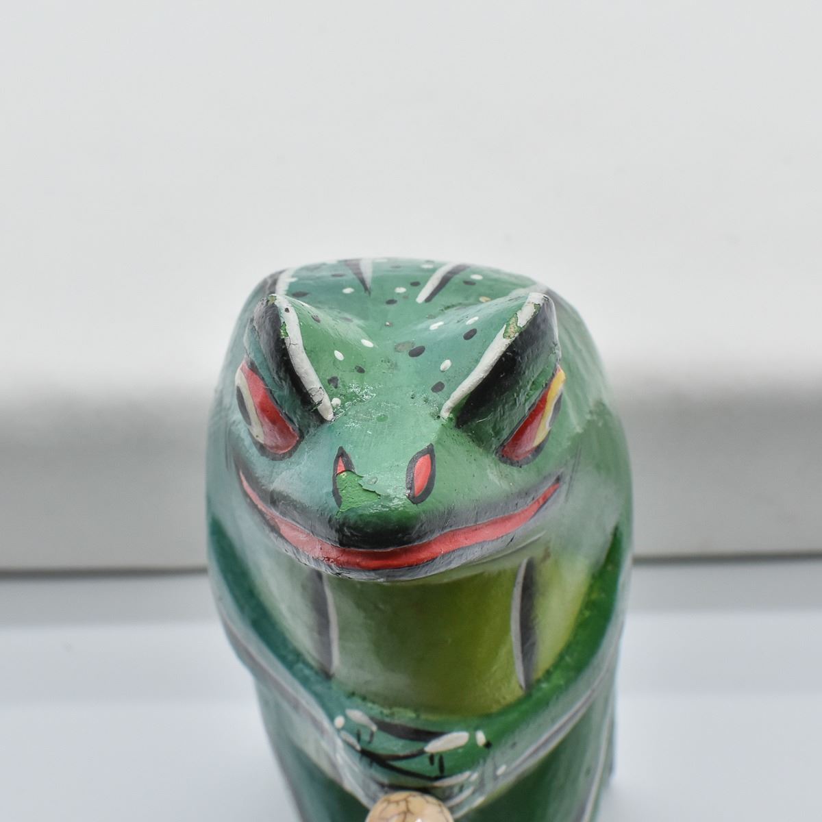 Indonesian Carved and Hand Painted Wood Frog, measures 3'' x 4'' x 7.5''