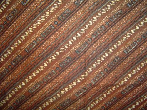 Exotic Batik Fabric from Jave, Indonesia,90"x40", beautiful traditional pattern (using Batik Chop) in chocolate brown & navy on a cream background, 5.5" pattern repeat. Finished edges, new, excellent for decorator projects or clothing.
