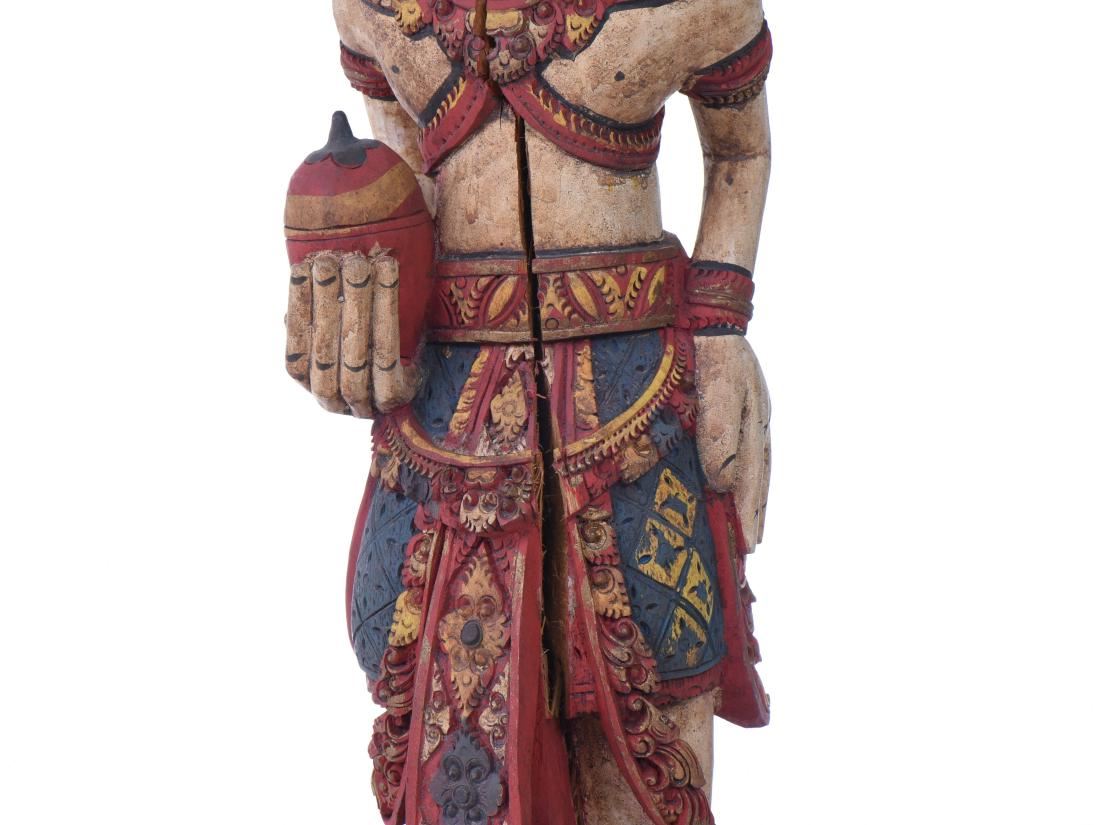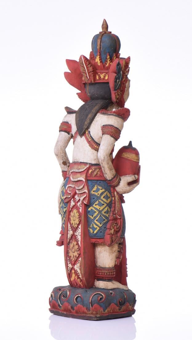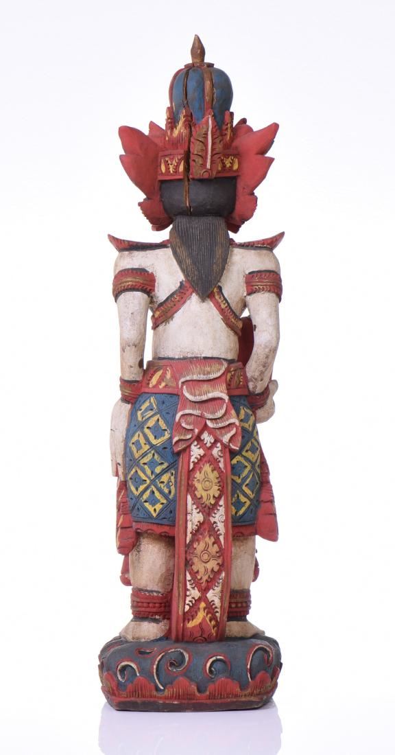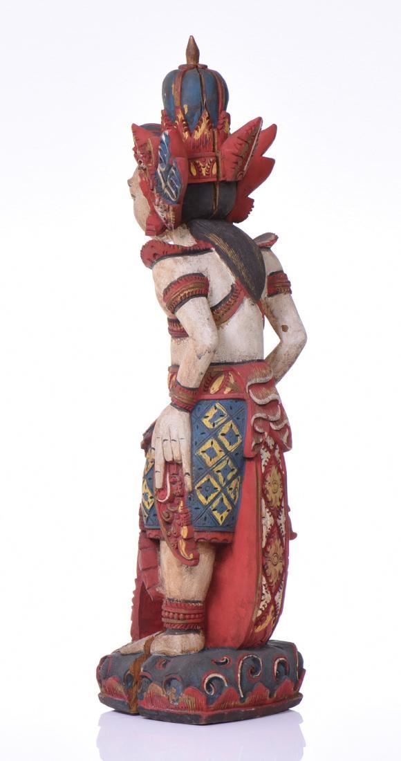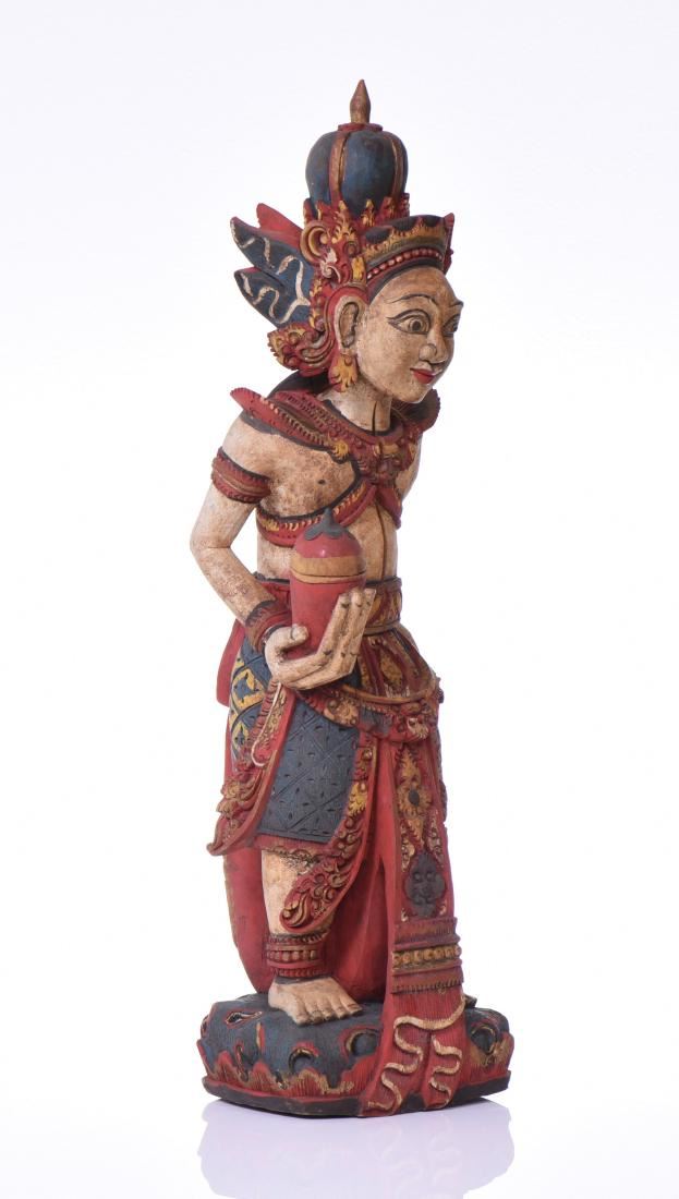 Indonesian Polychrome Hand Carved Wood Hindu Deity Of A Young Vishnu. Estimated more than 100 yrs old. Indonesian art consists of various artistic expressions and artworks of the archipelagic nation of Indonesia. It includes both age old art forms and recently developed contemporary art. Indonesian arts have experienced foreign exposures and influences most notably from India, Arabia, China and Europe. The nation consists of 13,466 islands where 922 are permanently inhabited by over 300 ethnic groups speaking more than 700 living languages. Wood and stone sculpting tribal art has flourished within the culture of Nias, Batak, Asmat, Dayak and Toraja. Between 8th to 15th century, Javanese civilization has developed a refined stone sculpting art and architecture which was influenced by Hindu-Buddhist Dharmic civilization. The art of wood carving is quite well-developed in Indonesia and certain areas are well known for its refined wood carving culture in Jepara and Bali. Balinese painting tradition are notable for its highly vigorous yet refined intricate art which resembles baroque folk art with tropical themes. Modern Indonesian paintings were pioneered by Raden Saleh, an 19th century an Arab-Javanese painter renowned for his romantic-naturalistic work during Dutch East Indies period in Indonesia. Prominent Indonesian painters in 20th century includes Basuki Abdullah, Lee Man Fong, Ida Bagus Made, Dullah and Affandi. (Wikipedia) Size: See Ruler Photo. (Photos Represent The Condition Of The Lot.)