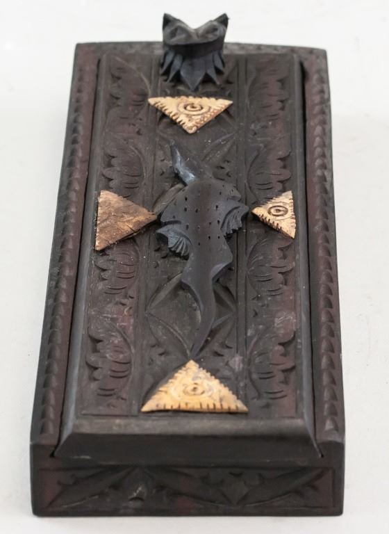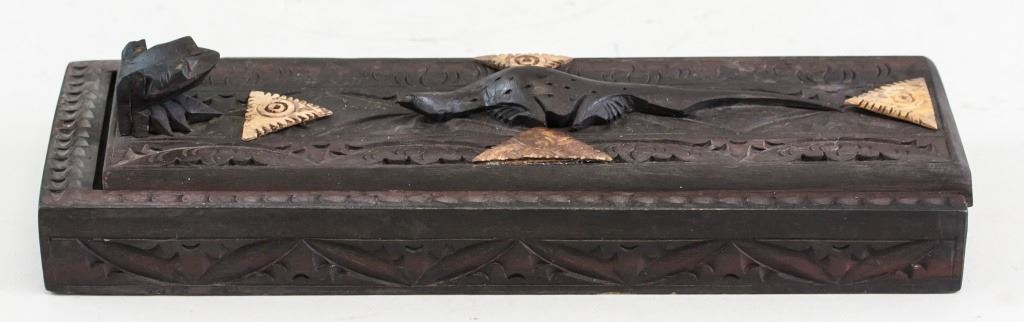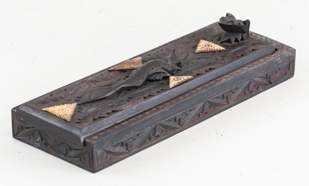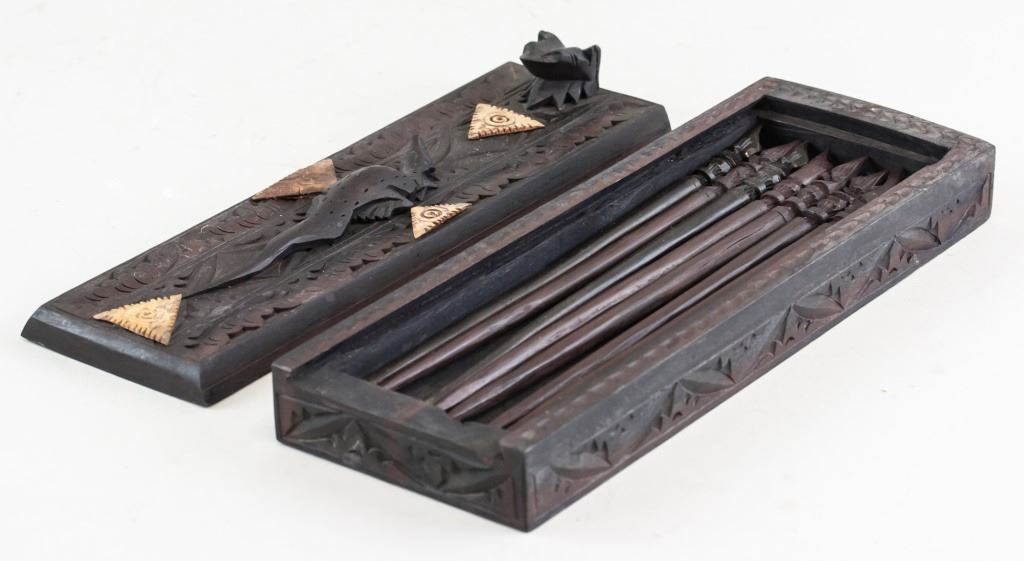 Indonesian wooden chopsticks with carved case. 5 x 27 cm, 384 grams.
