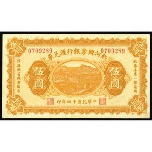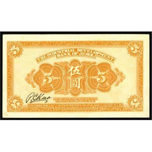 <style type="text/css"> body, td, th { font-family: Arial, Helvetica, sans-serif; font-size: 12px; color: #482424; margin: 0px; padding: 0px; } #header { background-image: url(http://www.bowersandmerena.com/ebay/images/template_v3_01.gif); clear: both; background-color: #590303; border-top-width: 2px; border-top-style: solid; border-top-color: #B38C4F; } #header #header_wrapper { height: 75px; clear: both; width: 800px; margin-right: auto; margin-left: auto; background-image: url(http://www.bowersandmerena.com/ebay/images/template_v3_03.gif); background-repeat: no-repeat; background-position: right; color: #F3EDCC; } #header #header_wrapper #header_logo { float: left; height: 75px; width: 444px; background-image: url(http://www.bowersandmerena.com/ebay/images/template_v3_02.gif); background-repeat: no-repeat; font-size: 10px; text-transform: capitalize; color: #B38C4F; } #header #header_wrapper #header_right { float: left; height: 75px; width: 356px; text-align: right; } #header #header_wrapper #header_right #headerLoginBtn { margin-bottom: 30px; } #header #header_wrapper #header_right input#txtSearch { color: #B49056; border: 1px solid #B49056; width: 175px; padding-top: 3px; padding-right: 3px; padding-bottom: 4px; padding-left: 3px; } #nav { height: 37px; background-image: url(http://www.bowersandmerena.com/ebay/images/template_v3_05.gif); clear: both; } #nav #nav_wrapper { height: 35px; width: 800px; margin-right: auto; margin-left: auto; border-left-width: 1px; border-left-style: solid; border-left-color: #B38C4F; } #nav #nav_wrapper a { padding-right: 15px; padding-left: 15px; border-right-width: 1px; border-right-style: solid; border-right-color: #B38C4F; height: 25px; padding-top: 10px; display: block; float: left; text-decoration: none; font-weight: bold; color: #5D0303; } #nav #nav_wrapper a:hover { color: #B38C4F; } #nav #nav_wrapper #search { float: right; padding-top: 7px; } #nav #nav_wrapper #search #txtSearch { font-family: Arial, Helvetica, sans-serif; font-size: 10px; text-transform: uppercase; color: #D2AE75; border: 1px solid #B38C4F; padding: 3px; } #content_bgd { background-image: url(http://www.bowersandmerena.com/ebay/images/template_v3_09.gif); background-repeat: repeat-y; background-position: center; padding-top: 15px; padding-bottom: 15px; background-color: #FBFBDB; } #content_wrapper { clear: both; height: auto; width: 800px; margin-right: auto; margin-left: auto; } .LotDetailWhite { line-height:normal; font-size:13px; font-family: arial,helvetica,sans-serif; color: White; font-weight: bold; } .LotDetailInformation { line-height:normal; font-size: 13px; font-family: arial,helvetica,sans-serif; } .LotDetailMessage { line-height:normal; font-size: 13px; font-family: arial,helvetica,sans-serif; color: red; } } tr.HeaderAuctionTitle td { color: #000000; font-weight: bold; padding: 2px; background-image: url(http://www.bowersandmerena.com/ebay/images/template_v3_05.gif); background-repeat: repeat-x; border-bottom-width: 1px; border-bottom-style: solid; border-bottom-color: #B38C4F; } table.AuctionSummary a, table.AuctionSummary a:link, table.AuctionSummary a:visited { color: #0000FF; text-decoration: none; } } td.tableHeaderLeft { border-left-width: 1px; border-left-style: solid; border-left-color: #B38C4F; } td.tableHeaderRight { border-right-width: 1px; border-right-style: solid; border-right-color: #B38C4F; } td.tableCellMiddle { border-left-width: 1px; border-left-style: solid; border-left-color: #B38C4F; border-right-width: 1px; border-right-style: solid; border-right-color: #B38C4F; padding: 5px; } tr.footer td { border-top-width: 1px; border-top-style: solid; border-top-color: #B38C4F; } </style> </head> <body> <div id="header"> <div id="header_wrapper"> <div id="header_logo"> </div> <div id="header_right"> </div> </div> </div> <div id="nav"> <div id="nav_wrapper"> <a href="http://www.bowersandmerena.com">Our eBayLive Auctions</a> <a href="#PaymentInfo">Payment Information</a> <a href="#ShippingInfo">Shipping Information</a> <a href="#About">About Bowers and Merena</a> </div> </div> <div id="content_bgd"> <div id="content_wrapper"> <table width="100%" border="0" cellpadding="5" cellspacing="0" class="AuctionSummary"> <tbody> <tr class="HeaderAuctionTitle" style="height: 25px;"> <td align="left" class="tableHeaderLeft" > </td> <td align="center" class="tableHeaderRight"> <span style="font-size: large;">Lot #659. Provincial Banks. Industrial Development Bank of Jehol, 1925 Issue.</span> </td> </tr> <tr> <td colspan="3" class="tableCellMiddle"> 1925, 5 Yuan, P-S2187a., Choice Uncirculated condition, signature "Kao" on back, BEPP, printer, rare in this condition.