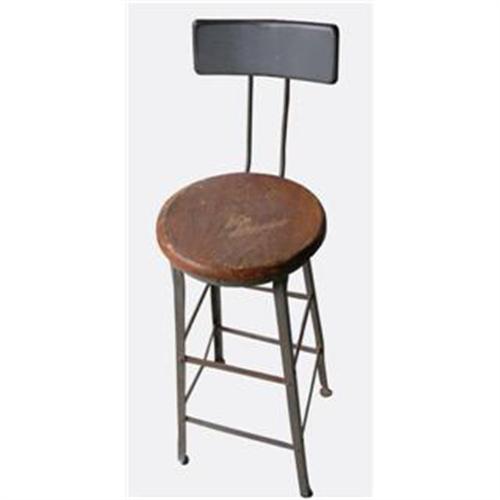 This piece has a solid oak seat and steel frame. The steel back rotates and adjusts up and down. It was originally used in an old laboratory. Very sturdy. Size: Back: 13" L x 5" H x 44" Overall H.