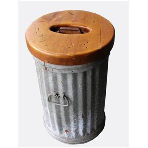 Heavy duty. They don't make them like this anymore. Perfect way to add storage and keep the look. You could also use to display another item/sculpture on top. Or add a glass top for a table. Made from very heavy galvanized steel. Originally from the MI Wolverine Brass Factory from 1880. Hand made lid from antique white pine with steel handle. Size: Can: 25.5" H x 17" Diameter. Lid: 3.5" H x 18" Diameter. Brought to you by Sand Hill East.