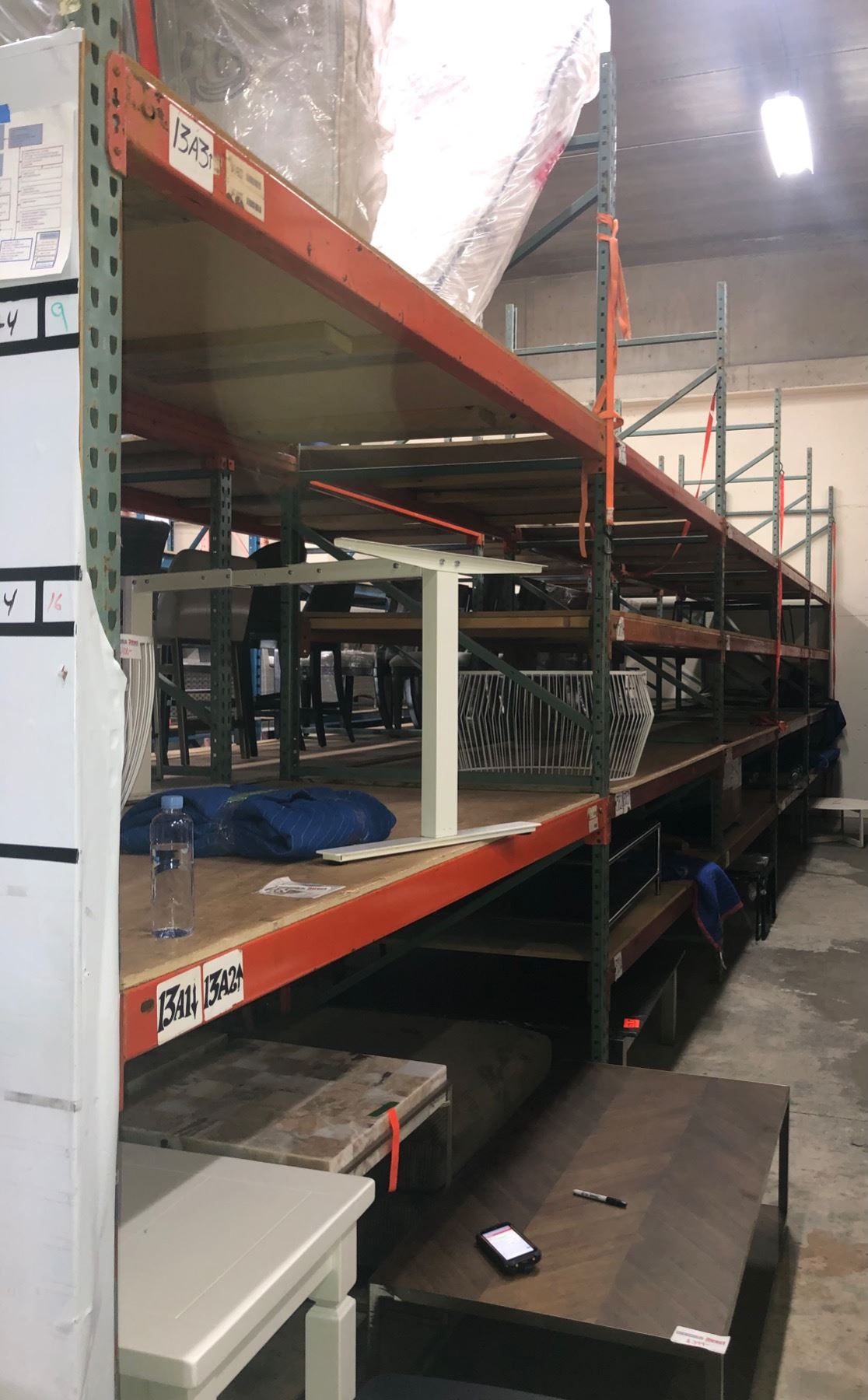 Industrial shelving rack - Includes 12 Vertical beams and 36 horizontal beams with wooden Shelf, 18 shelves (Approx., Vertical beams 12ft tall x Horizontal beams 8ft wide, x Shelves 4ft dept) (Content not Included )