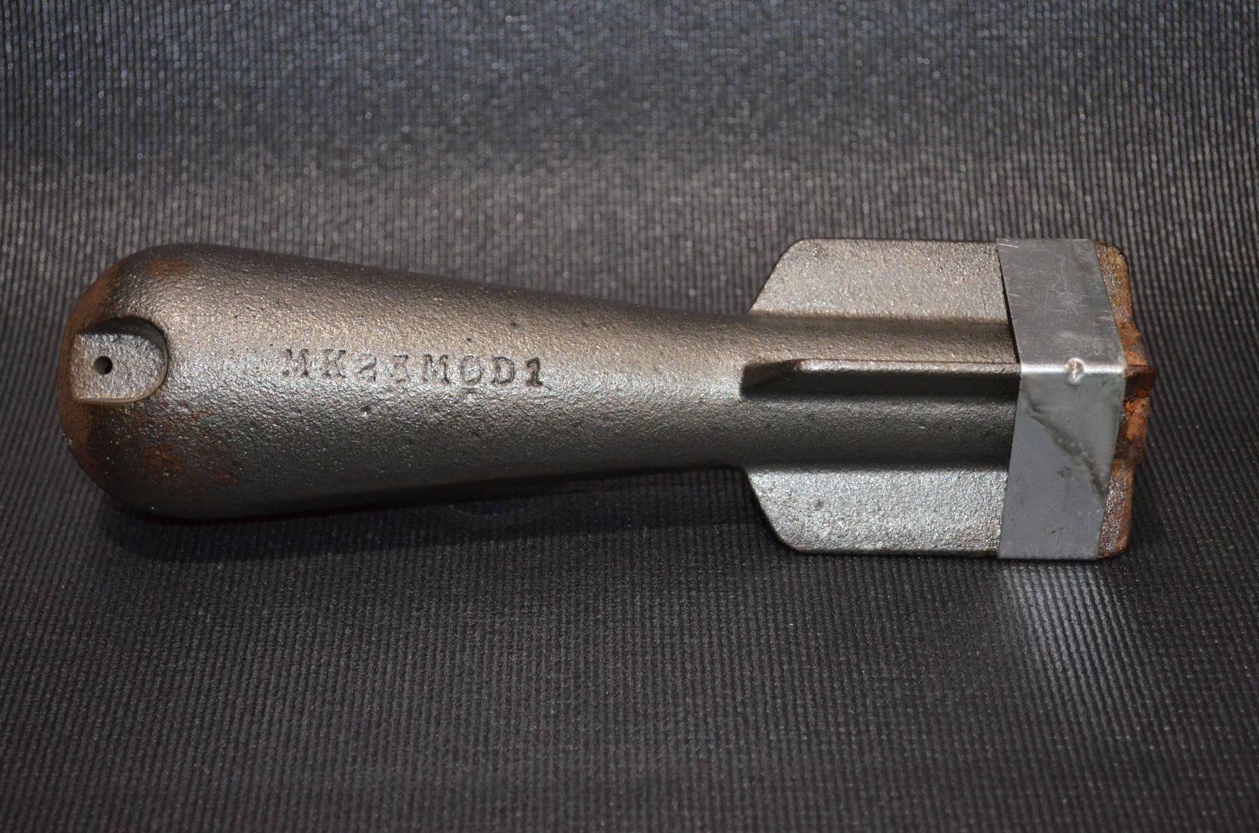 This original AN MK-23 practice bomb was one of three similar miniature practice bombs used for low-altitude horizontal or dive bombing practice during WWII.(8.2" X 2.18"D).