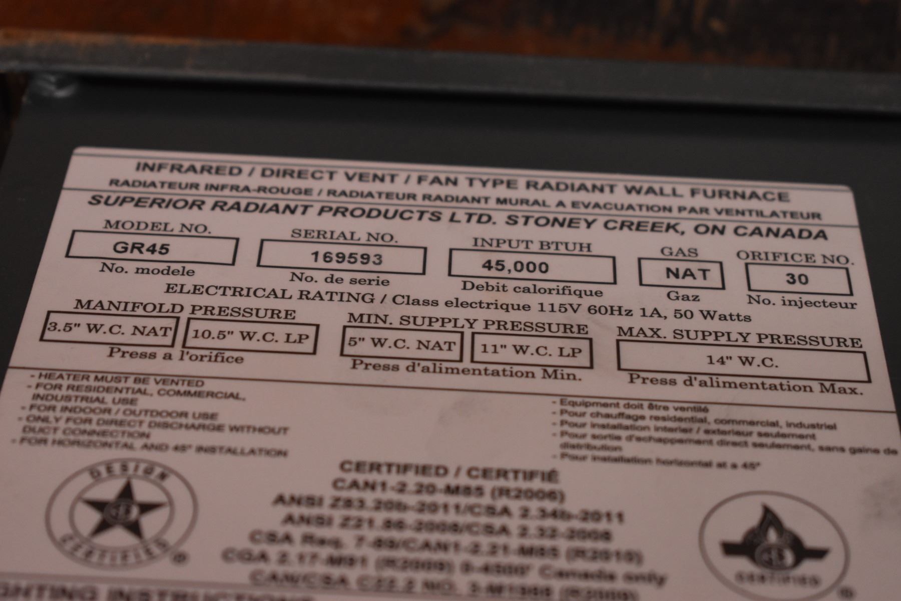 Infared Natural Gas overhead garage heater with exhuast pipe - 120" long