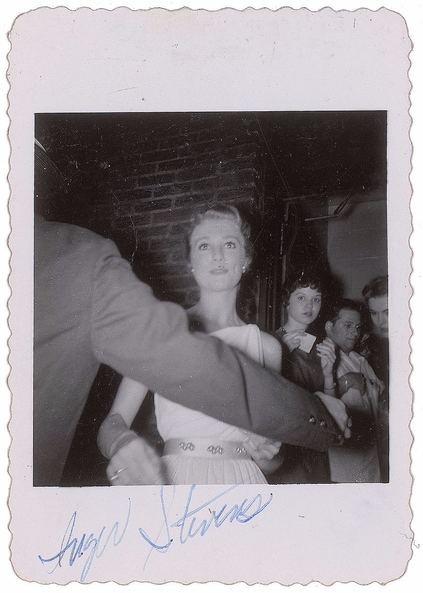 Uncommon vintage glossy 2.5 x 3.5 candid deckle-edge photo of Stevens surrounded by autograph seekers, signed in the lower border in blue ink. In fine condition.