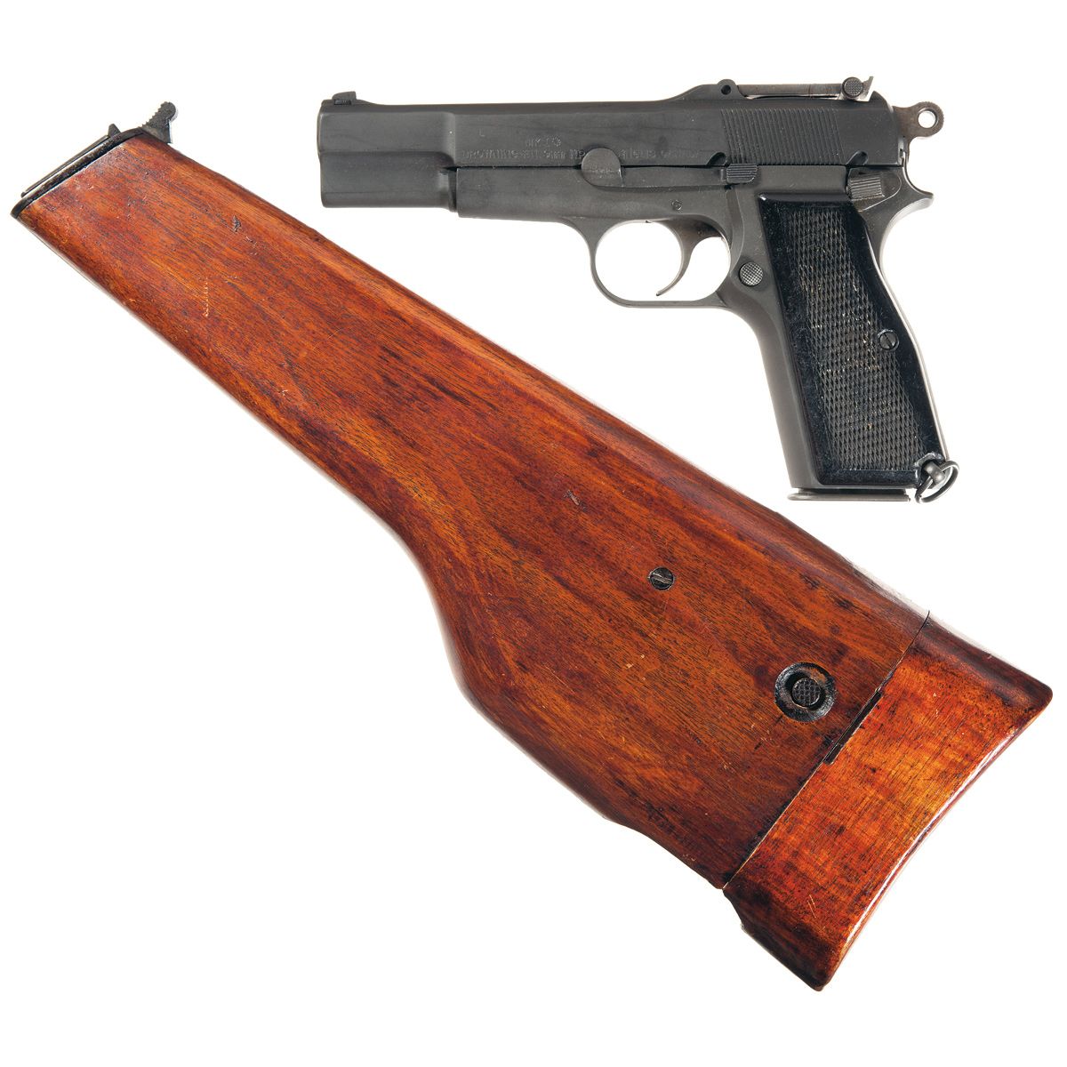 Tangent sight, slotted strap, holster stock with carved Chinese symbols, matching numbers on the frame, slide and barrel.