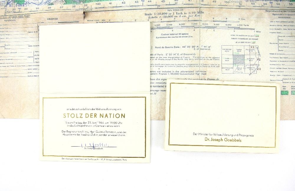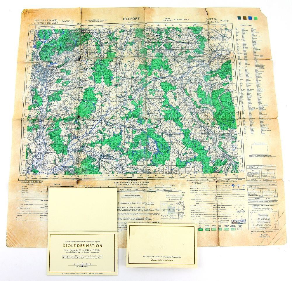 Inglourious Basterds (2009) The Belfort map Brad Pitt uses and two ticket invitations for the Theatre during the scene when it was blown up. From the movie written and directed by Quentin Tarantino and starring Brad Pitt & Christoph Waltz. (3)
