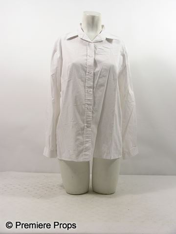 Bar Maid's screen worn off-white button up the front long sleeve shirt.